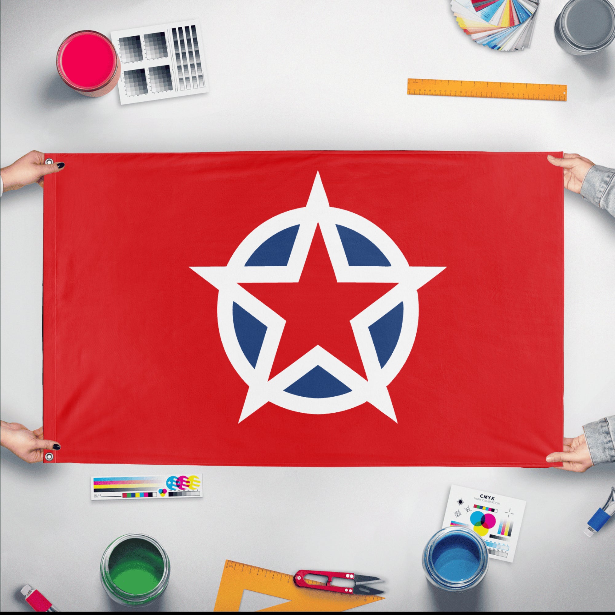 Our integrated flag maker app allows anyone to design and print their own flag. After finishing your design, you can print your flag in three easy steps.