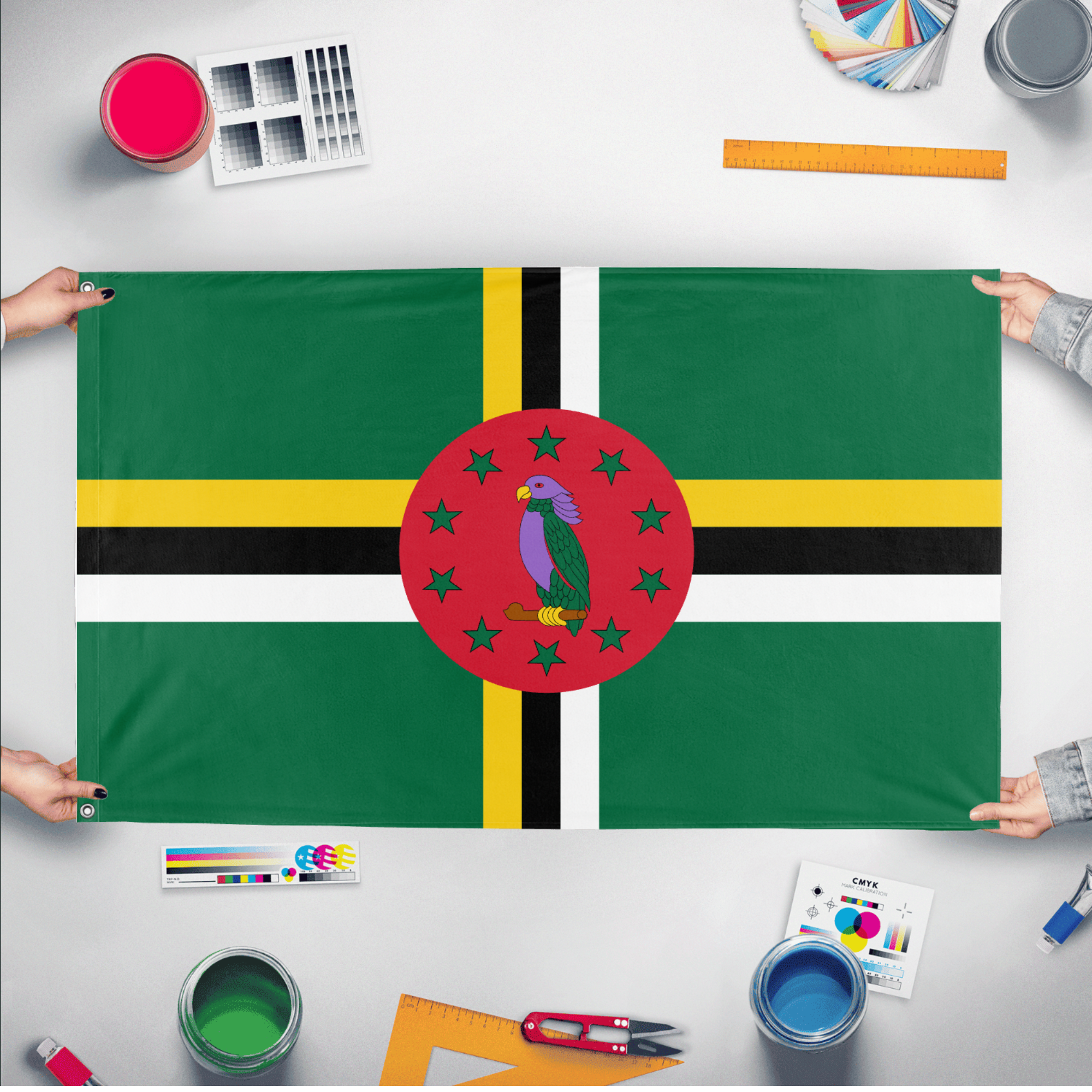 Our integrated flag maker app allows anyone to design and print their own flag. After finishing your design, you can print your flag in three easy steps.