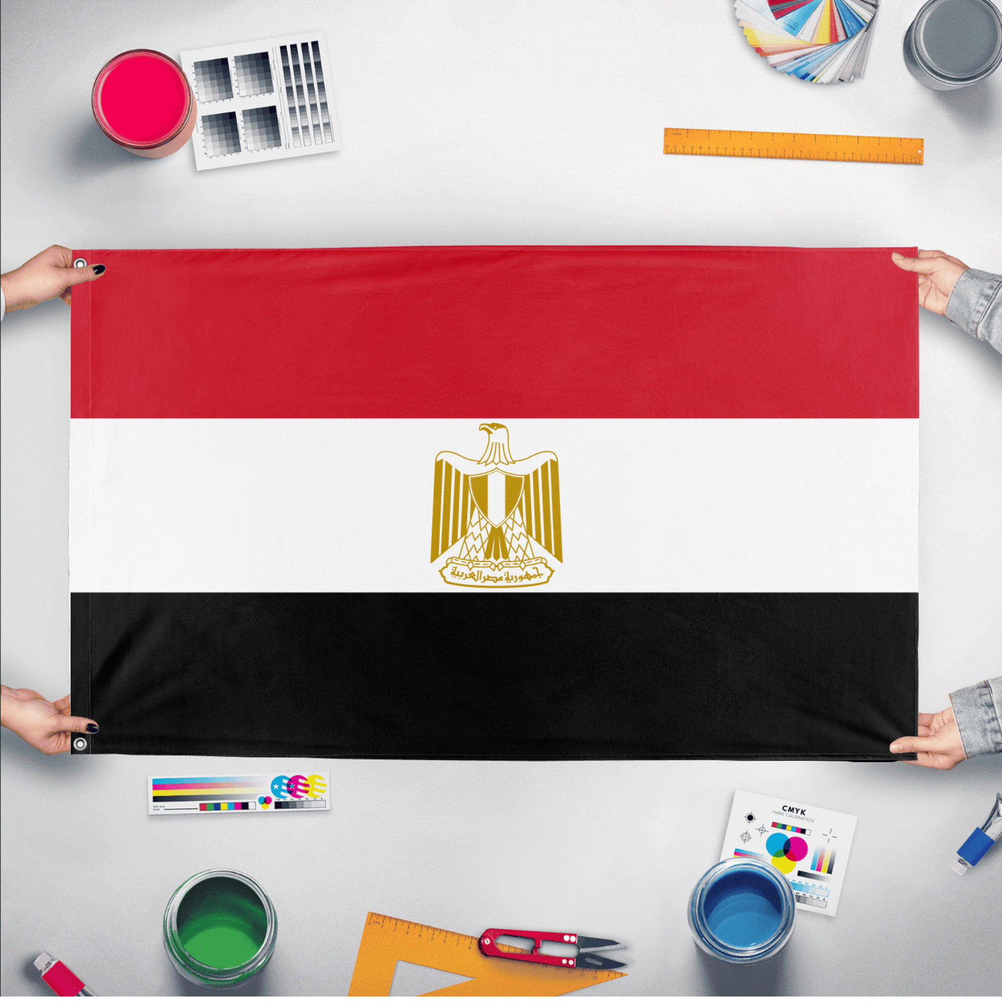 ✒️ The flag of Egypt consists of three horizontal stripes of red, white, and black, with the national emblem—a golden Eagle of Saladin—centered in the white band. The red symbolizes the struggle against oppression, the white represents a bright future and peace, and the black signifies the end of colonialism and the dark past. The Eagle of Saladin, a historic symbol of Arab nationalism, holds a scroll bearing the country’s name in Arabic. Officially adopted on October 4, 1984, the flag reflects Egypt’s revolutionary history, national identity, and sovereignty.