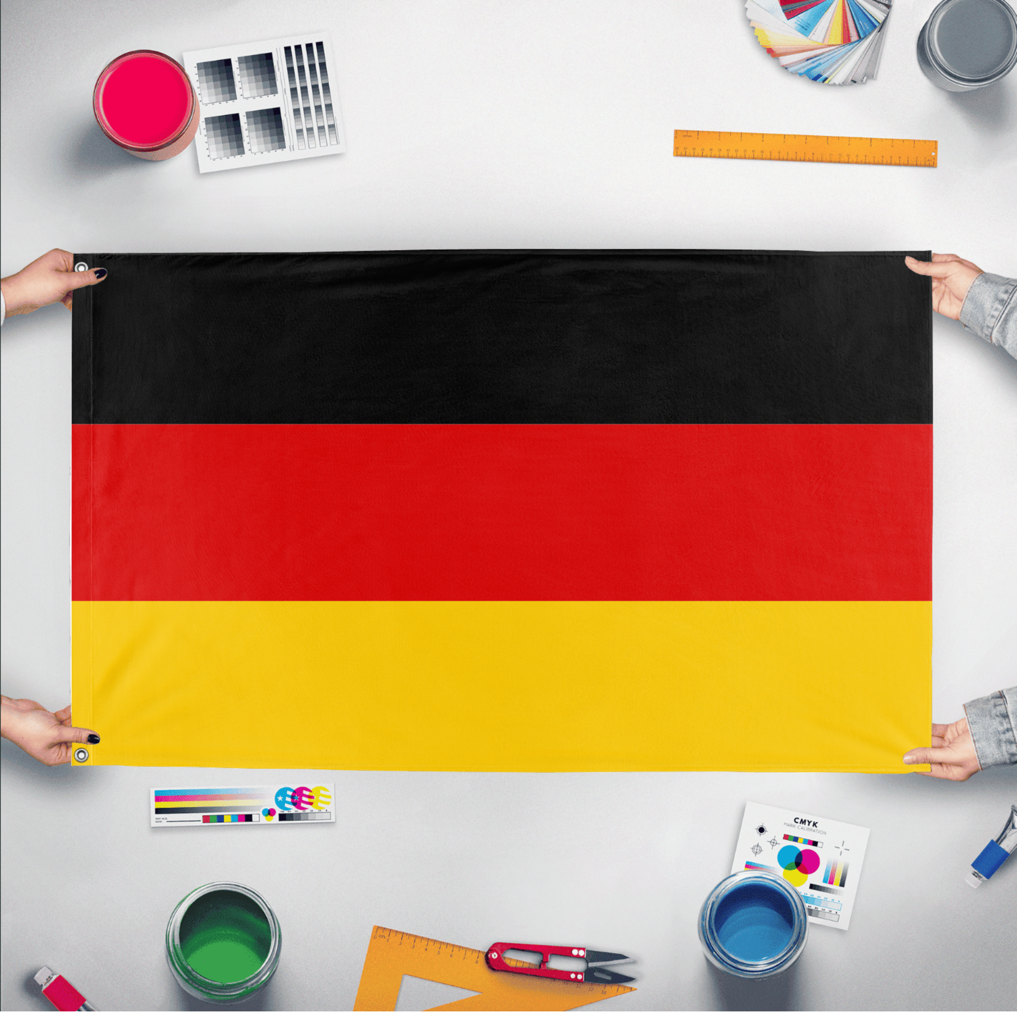 ✒️ The flag of Germany consists of three horizontal bands of equal size in black, red, and gold. These colors have historical significance, representing German unity and freedom dating back to the 19th century and the 1848 revolutions. The black symbolizes determination, the red stands for bravery and strength, and the gold represents generosity and the country's democratic traditions. Officially adopted in its current form on May 23, 1949, the flag embodies Germany’s national identity, unity, and commitment to democracy.