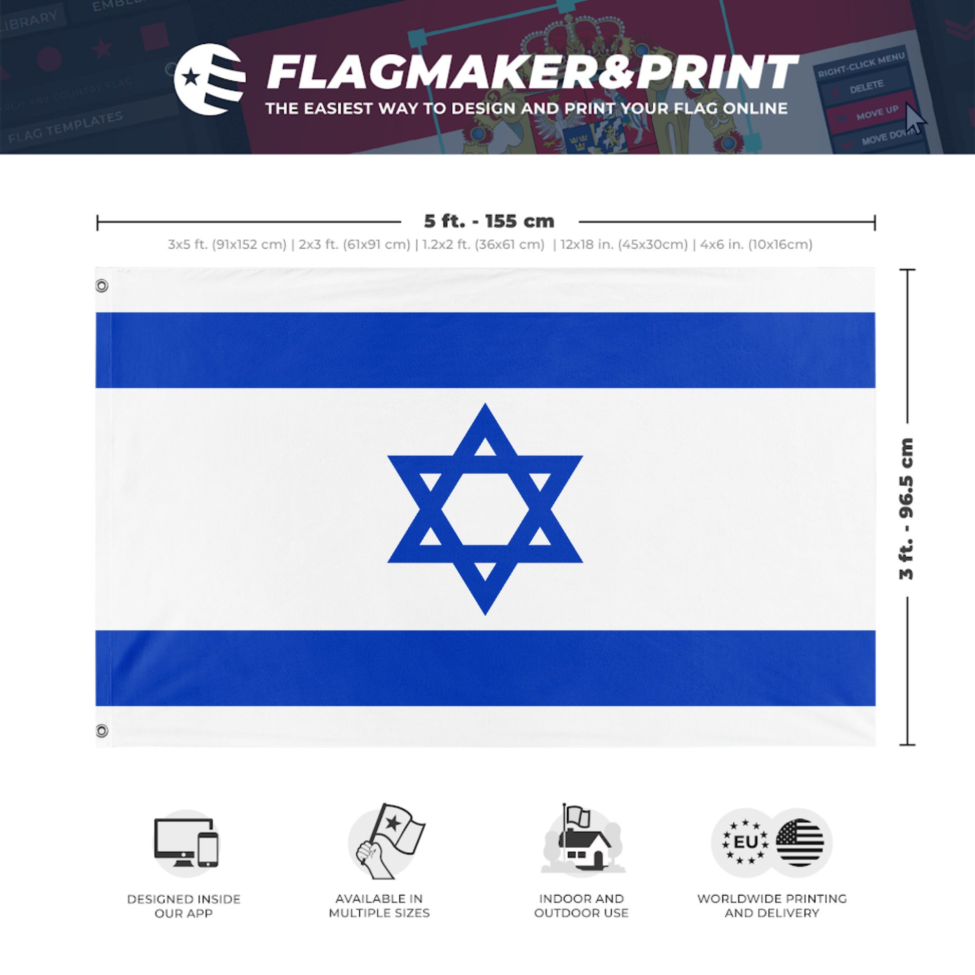 ✒️ The flag of Israel features a blue Star of David (Magen David) centered between two horizontal blue stripes near the top and bottom edges of a white field. The design is inspired by the traditional Jewish prayer shawl, the tallit, which typically has blue stripes. The Star of David symbolizes Judaism and Jewish identity, while the blue and white colours reflect themes of purity and faith. The flag was officially adopted on 28 October 1948, shortly after the establishment of the State of Israel, and serves as a national emblem of the Jewish people and their historical connection to the land.