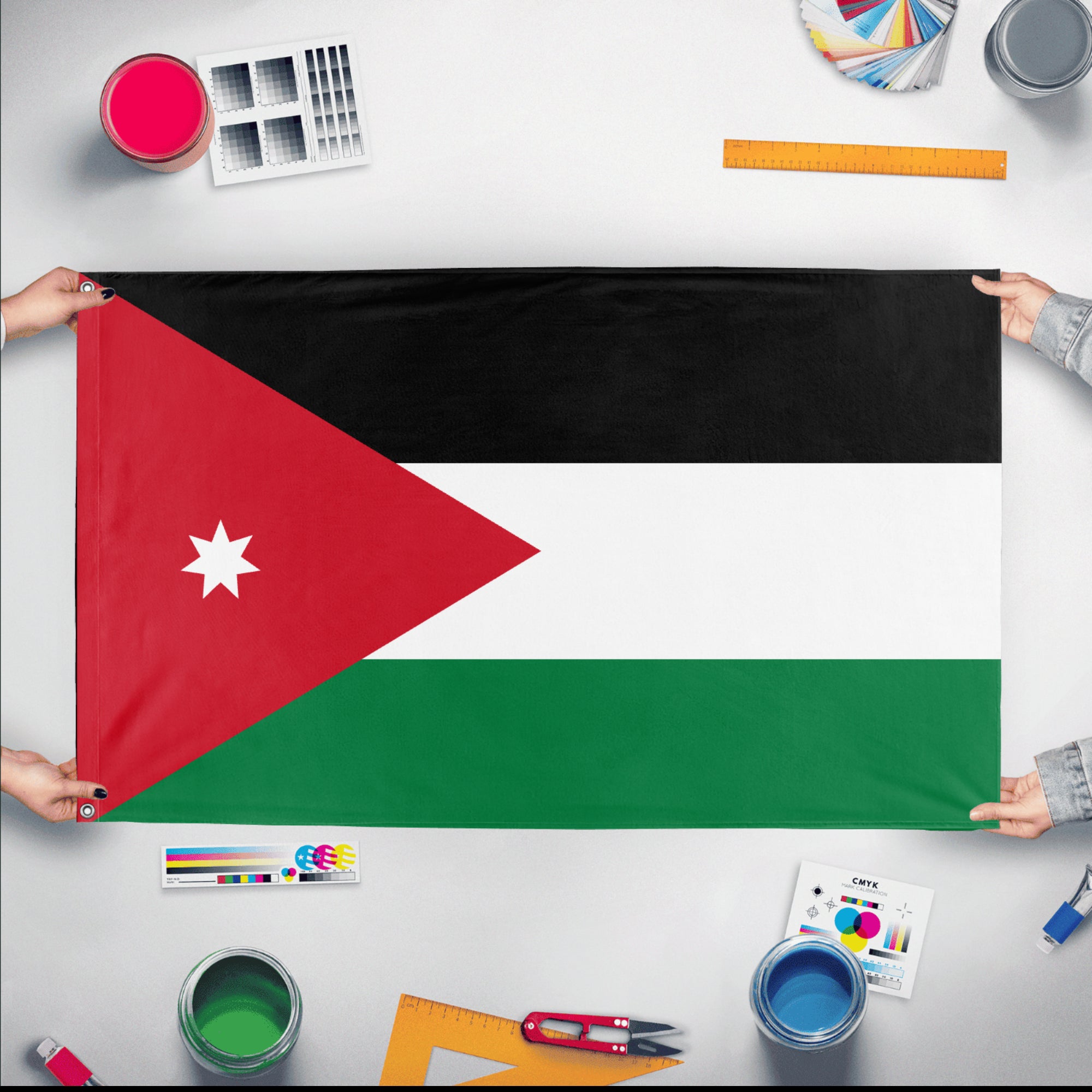 ✒️ The flag of Jordan consists of three horizontal bands of black, white, and green, representing the Abbasid, Umayyad, and Fatimid caliphates respectively, overlaid by a red chevron symbolizing the Hashemite dynasty and the Arab Revolt against Ottoman rule. Centered within the red chevron is a white seven-pointed star, representing the seven verses of the first surah of the Qur'an and the unity of the Arab people. The flag was officially adopted on 18 April 1928 and is based on the flag of the Arab Revolt of 1916. It symbolizes Jordan’s Islamic heritage, Arab identity, and national unity.