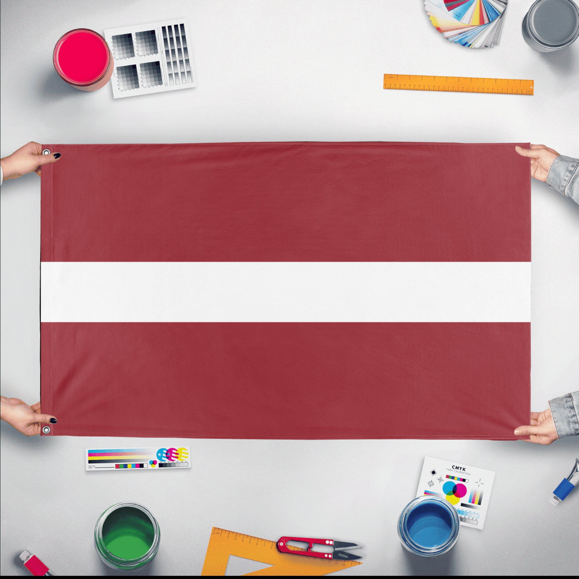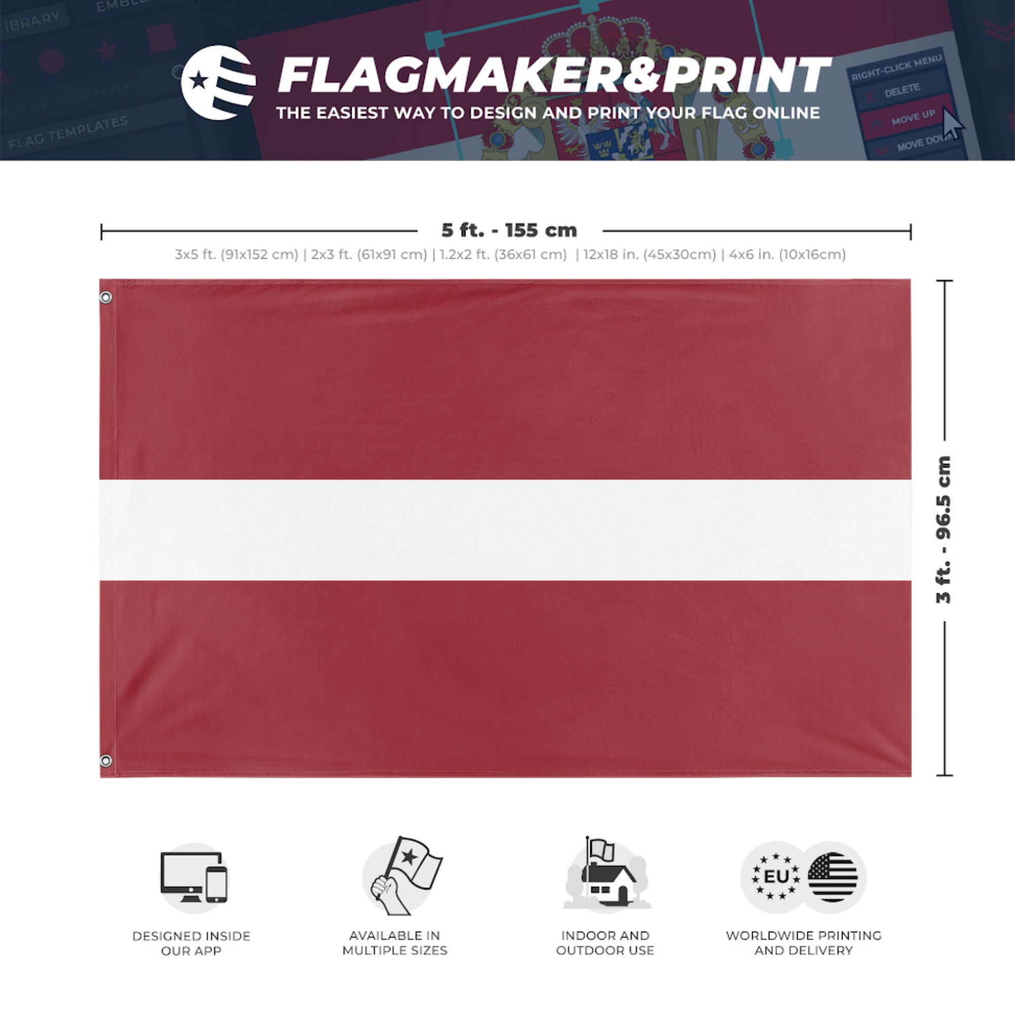 Our integrated flag maker app allows anyone to design and print their own flag. After finishing your design, you can print your flag in three easy steps.