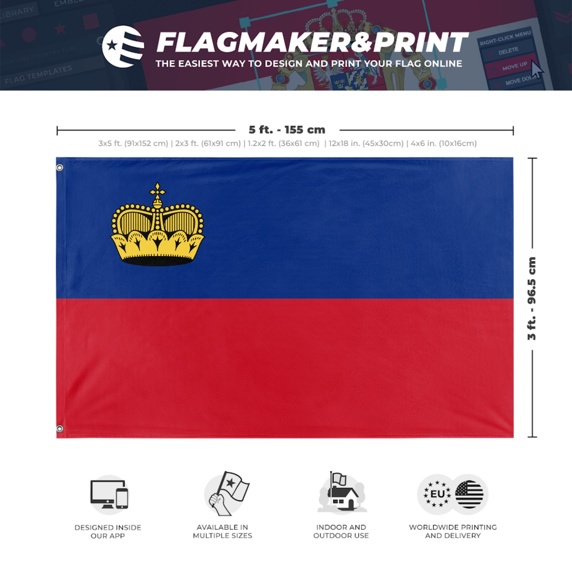 Our integrated flag maker app allows anyone to design and print their own flag. After finishing your design, you can print your flag in three easy steps.