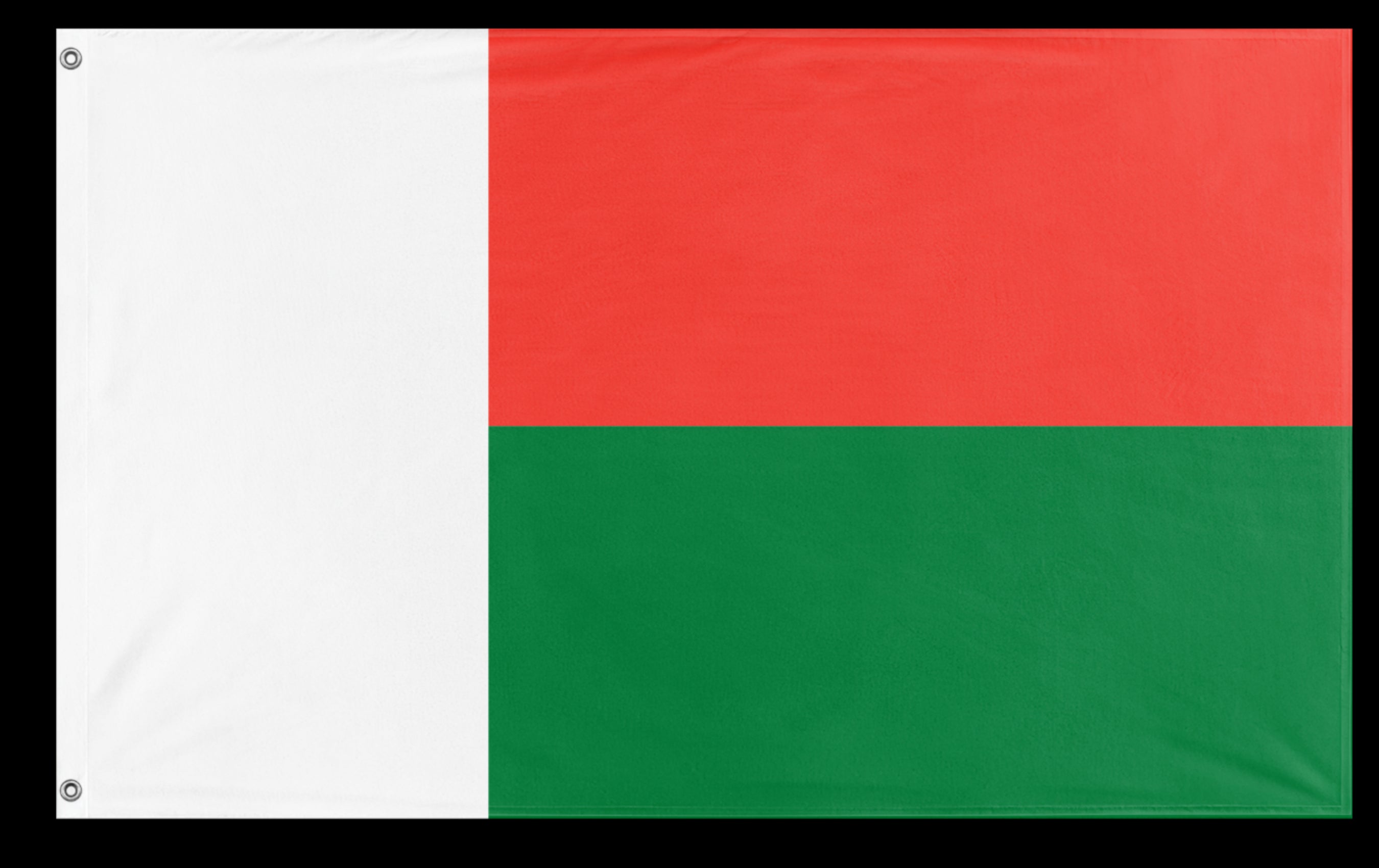 ✒️ The flag of Madagascar features two horizontal bands of red and green on the right side, alongside a vertical white band on the hoist side. The white color represents purity and hope, the red symbolizes sovereignty and the struggle for independence, and the green reflects the island’s fertile land and peasantry. Adopted on October 14, 1958, shortly before Madagascar’s independence from France, the flag embodies the country’s cultural heritage and national aspirations.