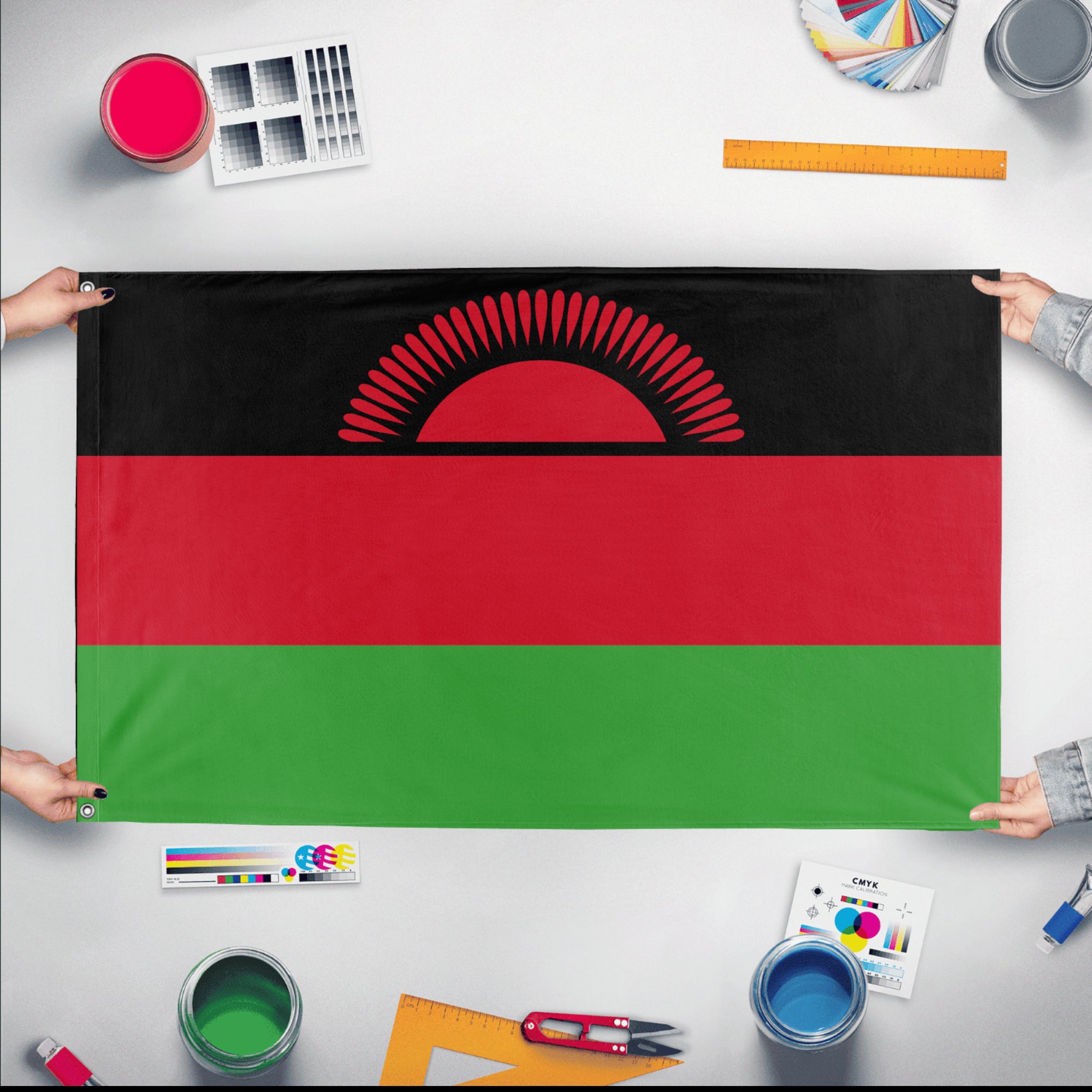 Flagmaker & Print offers best-of-class custom flags in over 32 sizes and variations. Our custom flag print offering ranges from 3x5ft outdoors flags to small desk and hand-waving flags.