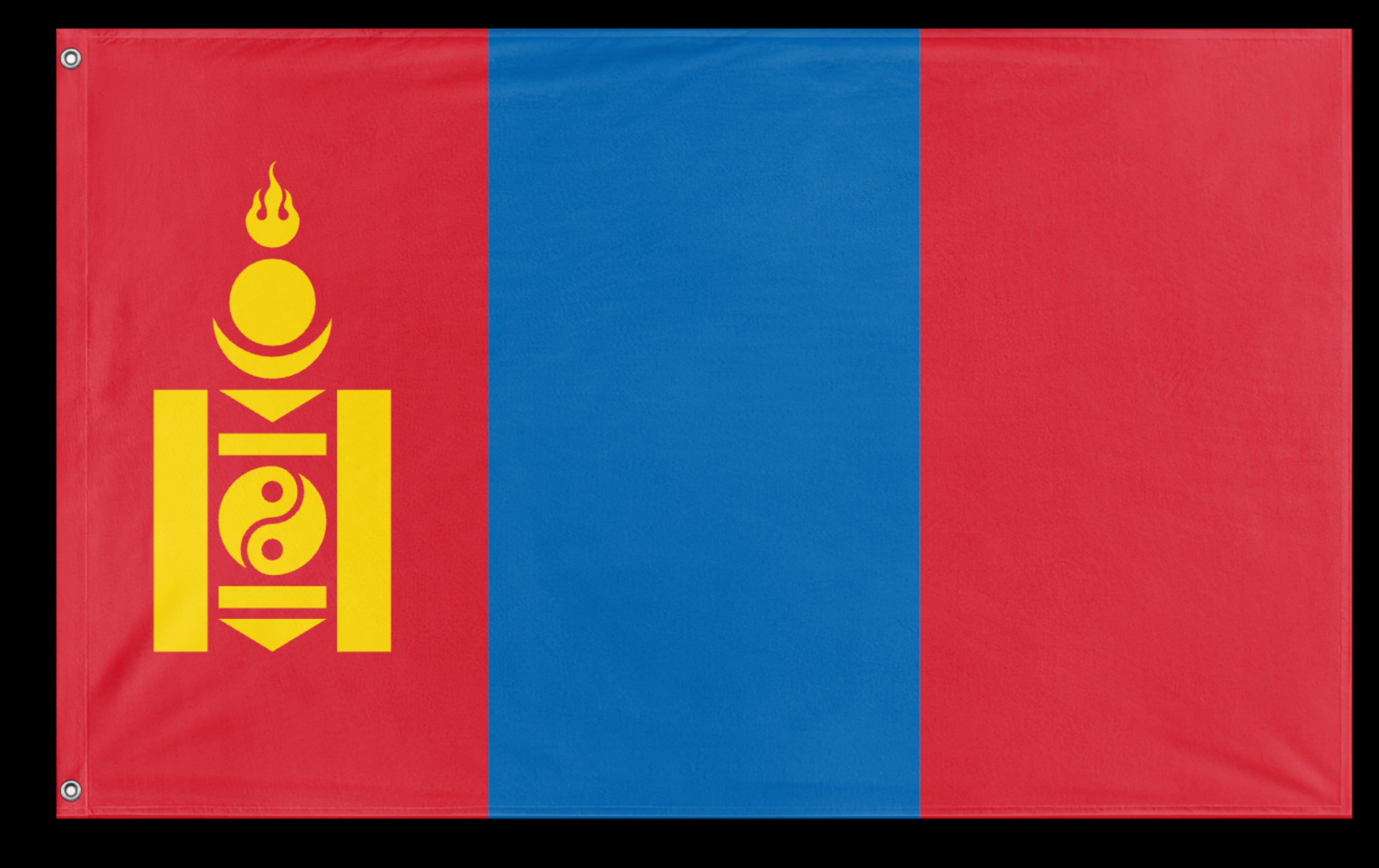 ✒️ The flag of Mongolia consists of three vertical stripes of red, blue, and red, with the national emblem, the Soyombo symbol, centered on the hoist-side red stripe. The blue stripe represents the eternal sky, while the red stripes signify progress and prosperity. The Soyombo, a traditional Mongolian symbol, incorporates elements representing fire, sun, moon, earth, water, and the yin-yang, symbolizing freedom, independence, and the spiritual and material balance of the nation. The current design was officially adopted on February 12, 1992, following the country's transition to democracy, reflecting Mongolia’s cultural heritage and national identity.