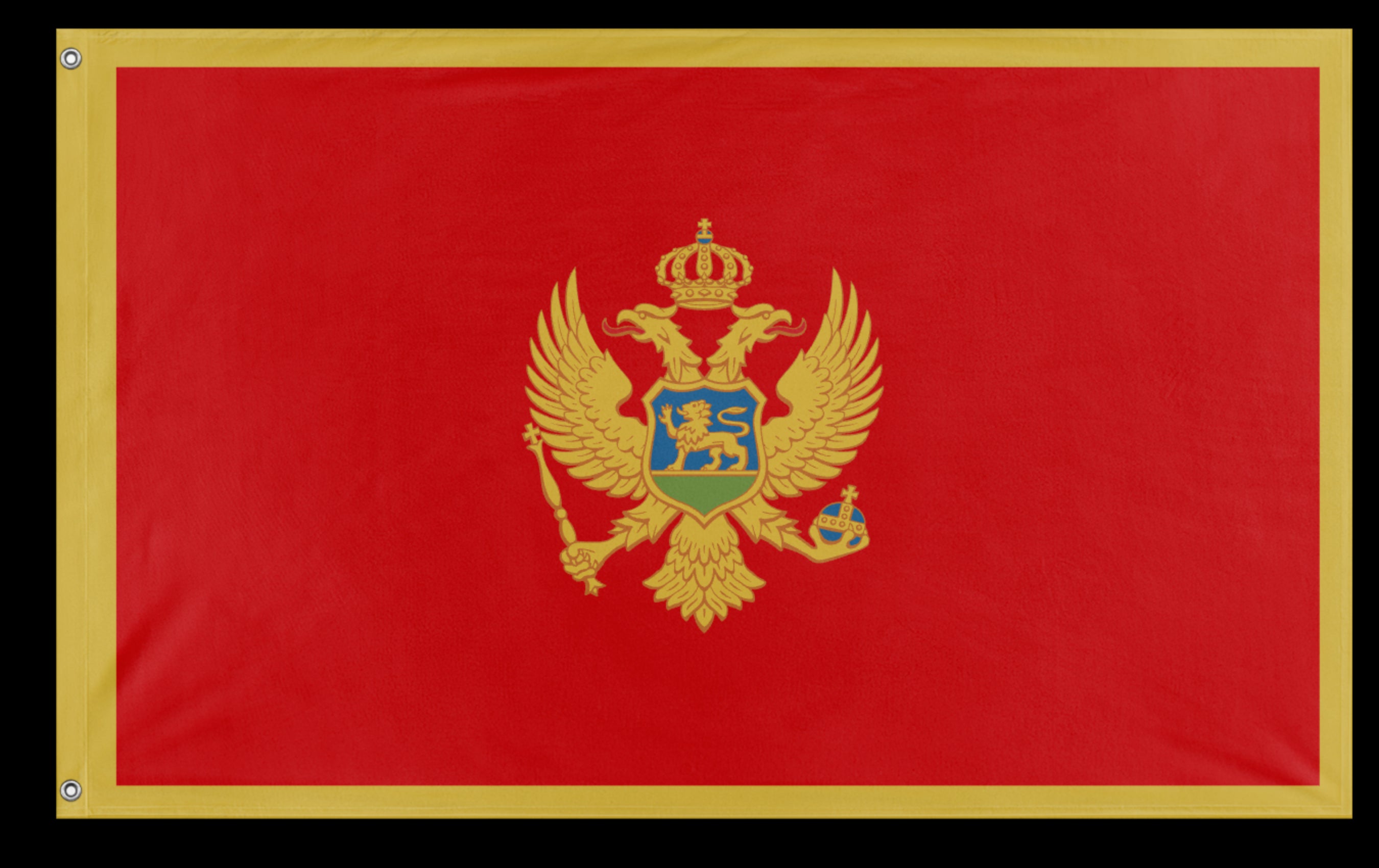 ✒️ The flag of Montenegro features a red field bordered with a narrow golden-yellow edge and bears the national coat of arms at its center. The coat of arms consists of a golden two-headed eagle holding a scepter and an orb, symbolizing state authority and sovereignty, with a shield on its chest depicting a golden lion passant on a green field, representing historic ties to the Kingdom of Montenegro. The red and gold colors reflect the country’s royal heritage. Officially adopted on July 13, 2004, the flag symbolizes Montenegro’s independence, history, and national pride.