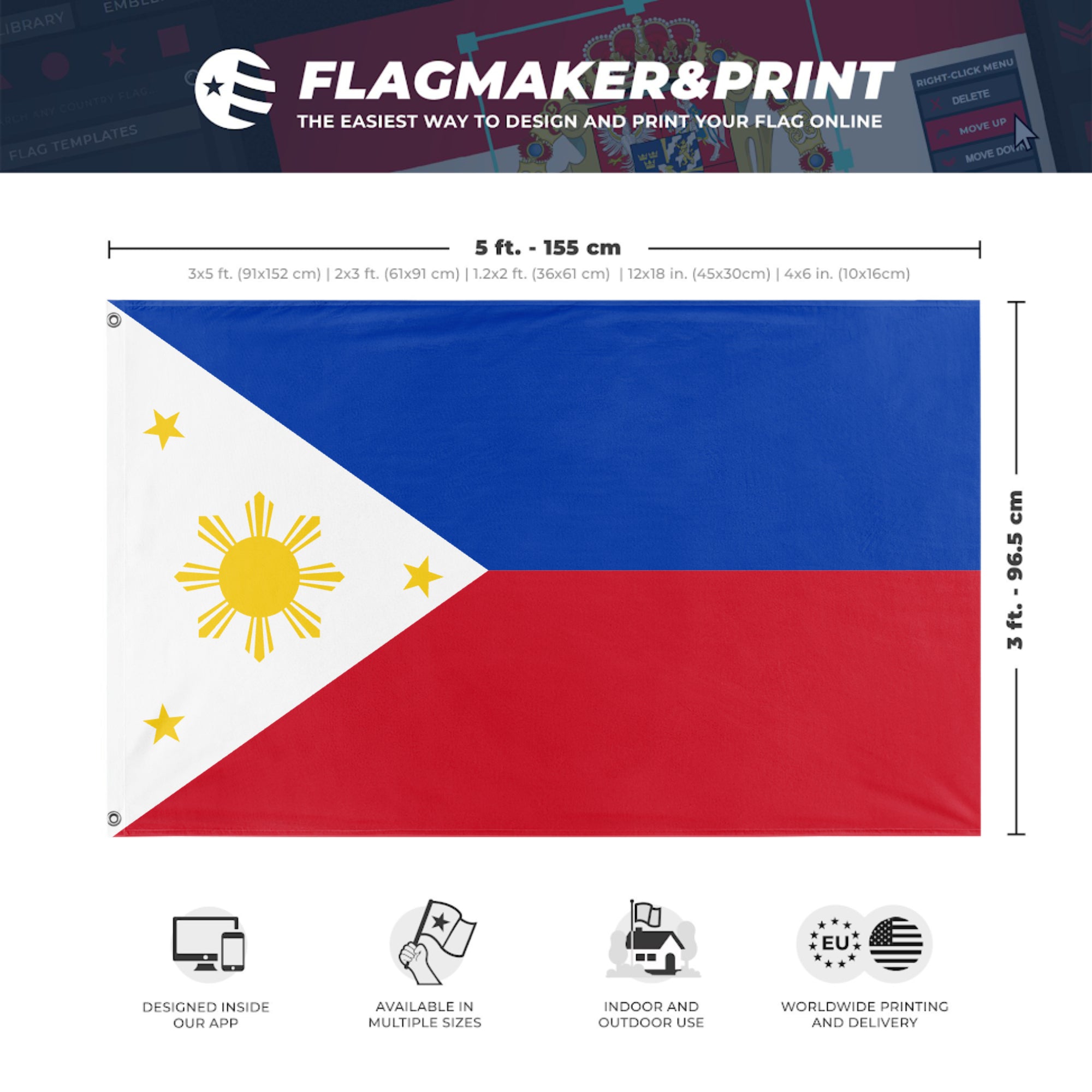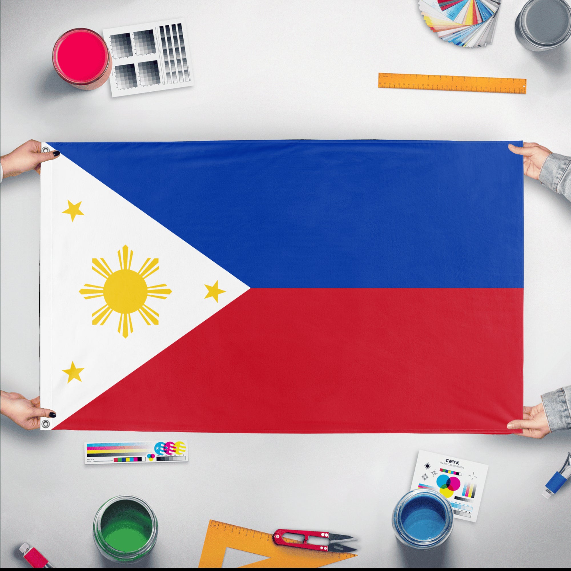 ✒️ The flag of the Philippines consists of two horizontal bands of blue over red, with a white equilateral triangle at the hoist containing a golden-yellow sun with eight rays and three five-pointed stars, one at each corner of the triangle. The blue symbolizes peace, truth, and justice, while the red stands for patriotism and valor. The sun represents independence and the eight rays signify the first provinces that revolted against Spanish rule. The three stars represent the three main geographical regions of the country: Luzon, Visayas, and Mindanao. Unique among national flags, it can be flown with the red stripe on top in times of war. The flag was officially adopted on 12 June 1898, coinciding with the country's declaration of independence.