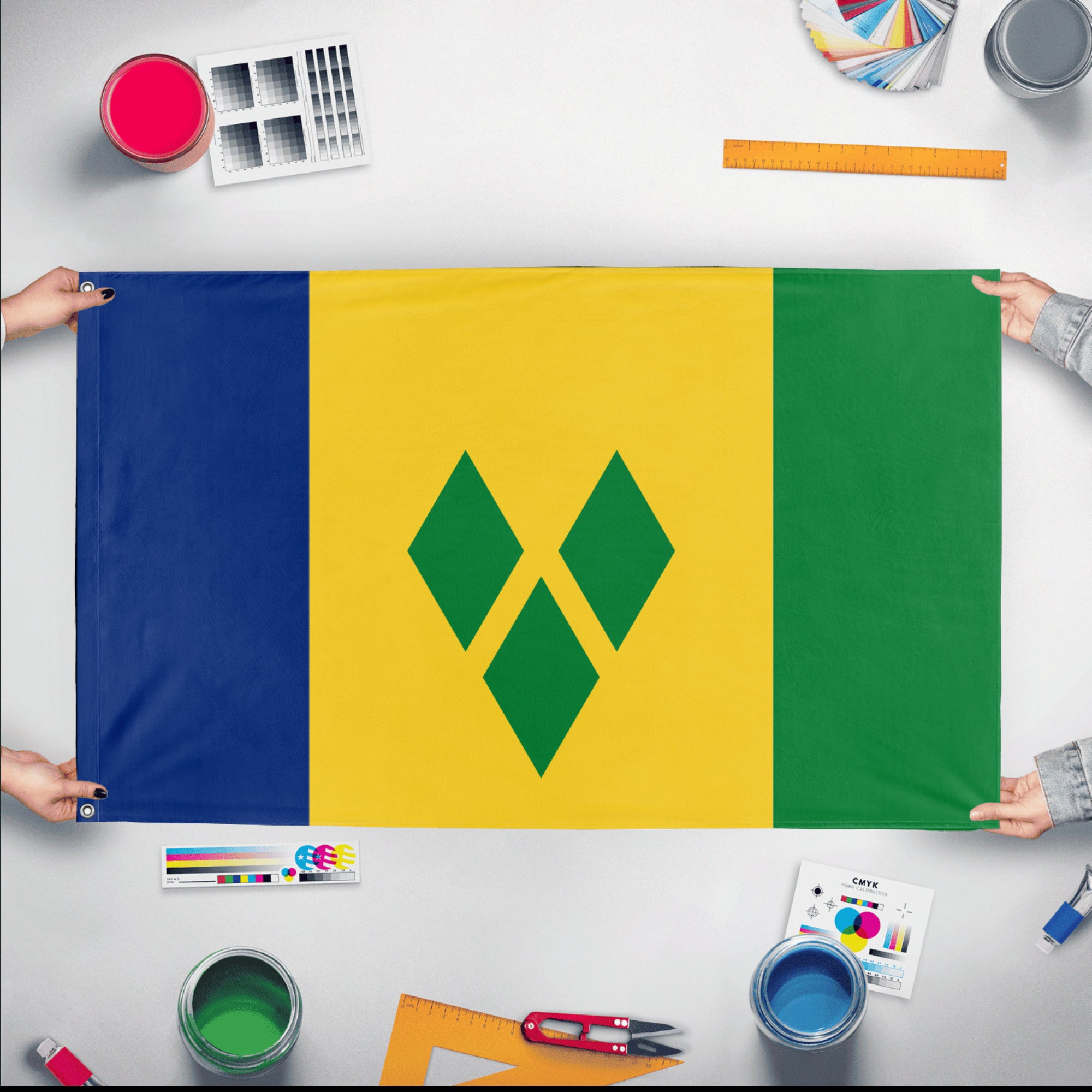 ✒️ The flag of Saint Vincent and the Grenadines consists of three vertical bands of blue, gold, and green, with the central gold band being wider and featuring three green diamonds arranged in a V pattern. Officially adopted on October 21, 1985, the flag's colors and symbols reflect the nation’s identity and geography. The blue represents the sky and sea, the gold symbolizes the warmth and brightness of the country’s climate, and the green stands for the lush vegetation of the islands. The diamonds, often referred to as "the gems of the Antilles," emphasize the country’s nickname and its location in the Caribbean.