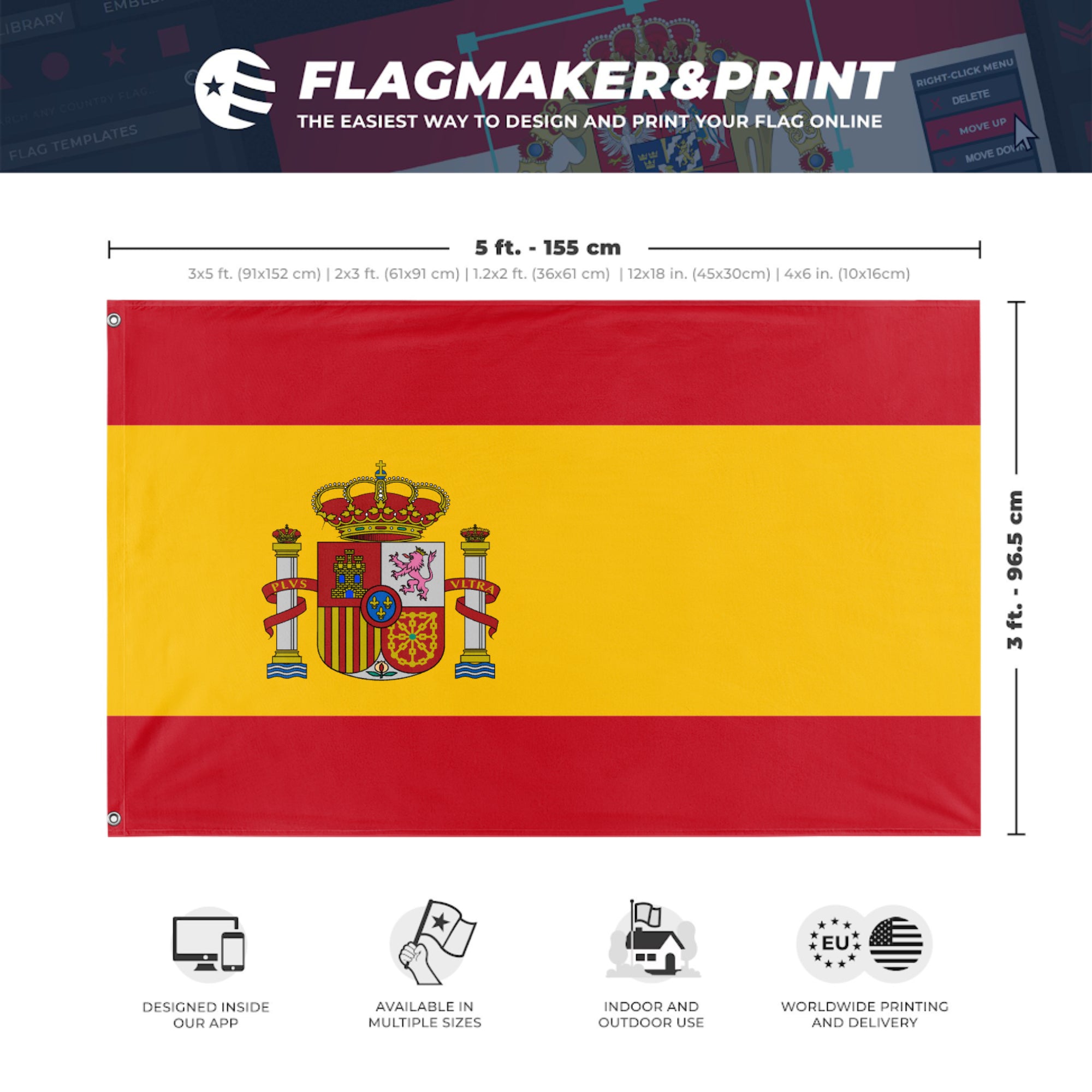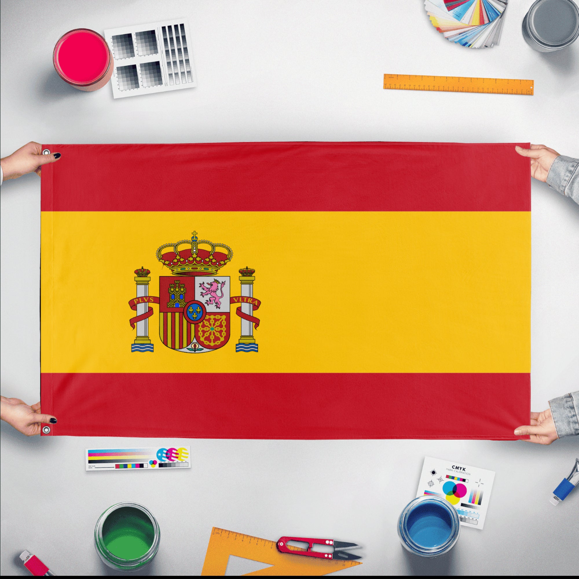 ✒️ The flag of Spain consists of three horizontal stripes: a red stripe at the top and bottom and a wider yellow stripe in the center, with the national coat of arms positioned toward the hoist side of the yellow band. Officially adopted on December 19, 1981, the red and yellow colors are traditional Spanish hues dating back to the late 18th century. The coat of arms features symbols representing the historic kingdoms of Spain, the Pillars of Hercules, and the Spanish royal crown, reflecting the country’s heritage, unity, and constitutional monarchy.