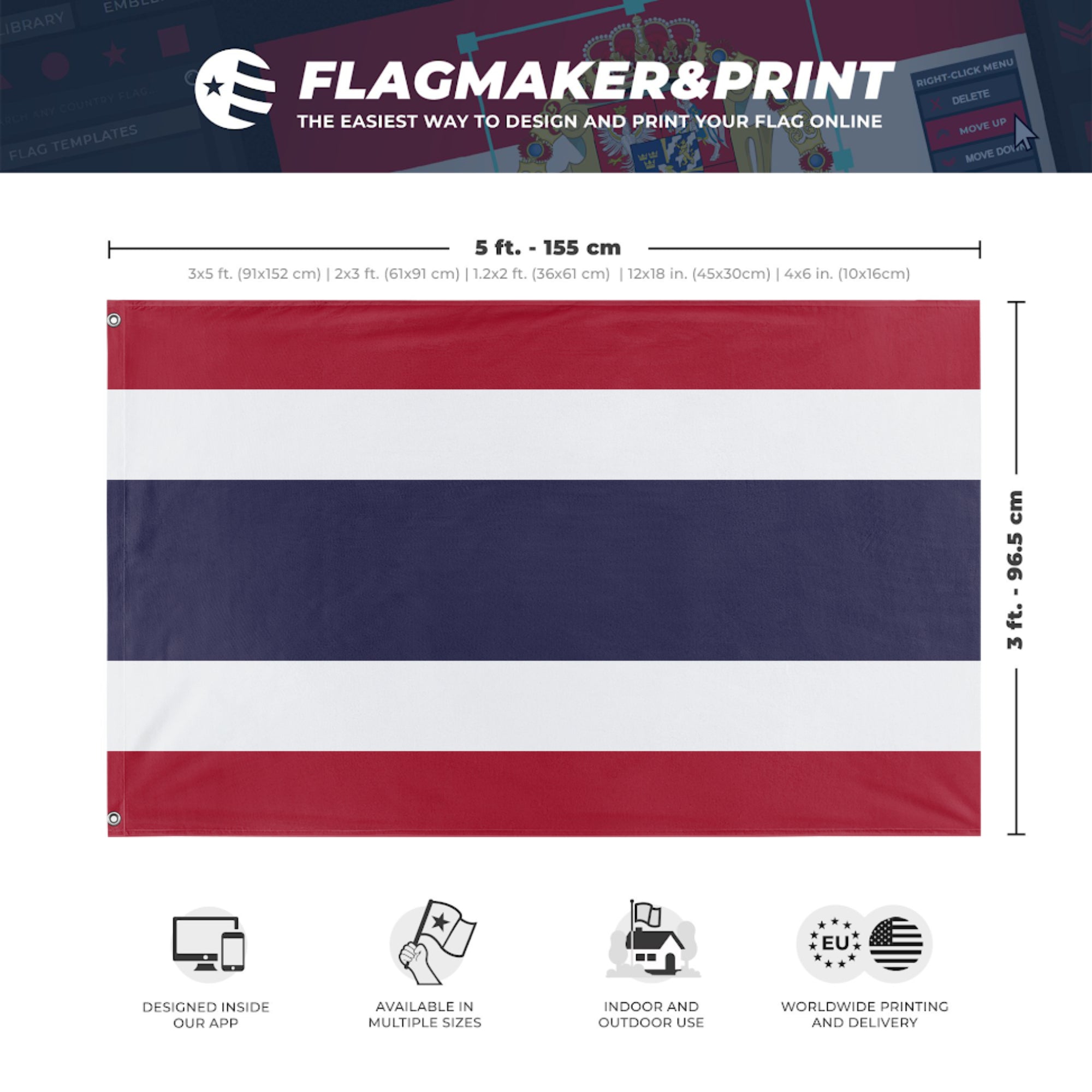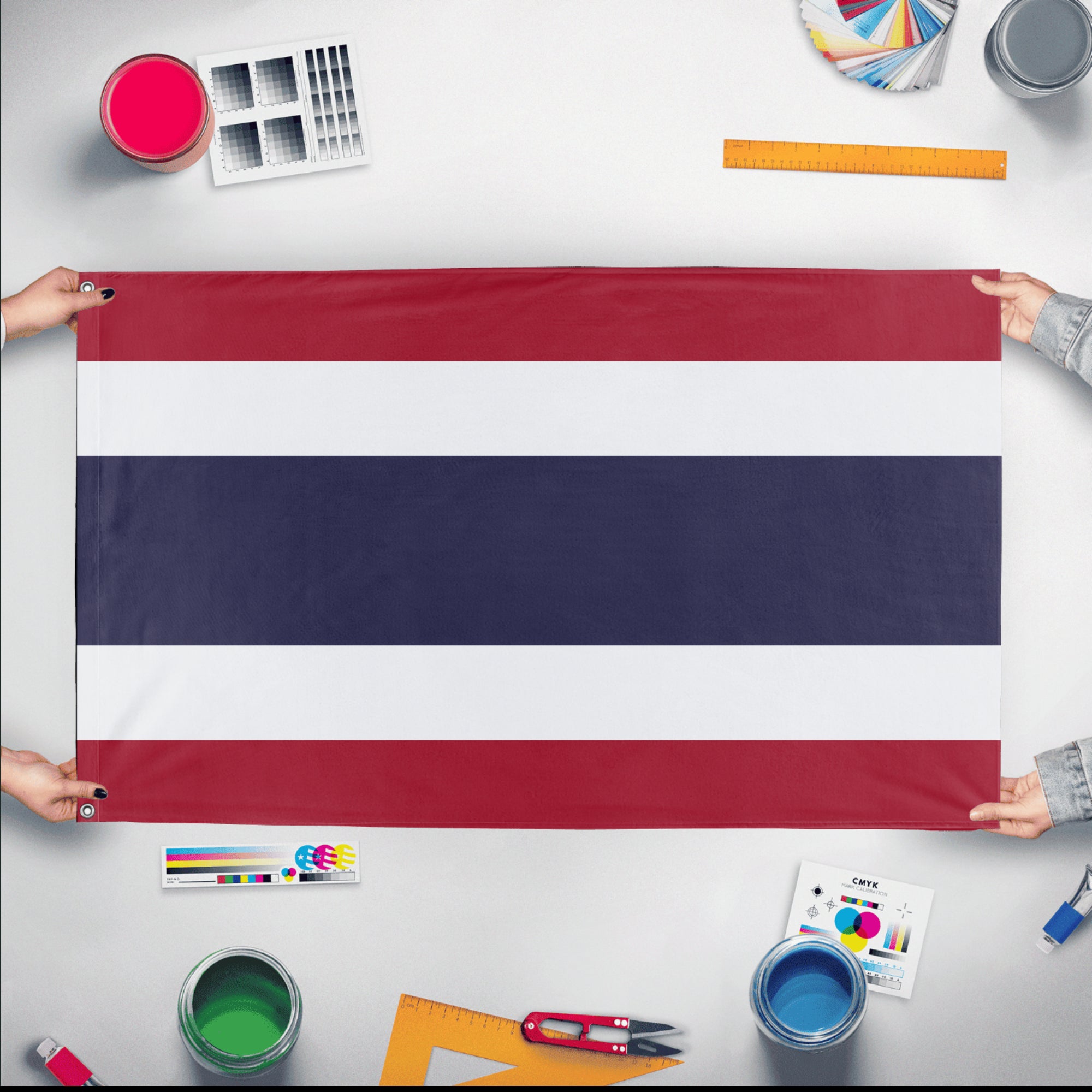✒️ The flag of Thailand, known as the "Tricolor Flag," features five horizontal stripes in the order of red, white, blue, white, and red, with the central blue stripe being twice as wide as the others. Officially adopted on September 28, 1917, the flag’s colors carry symbolic meaning: red represents the nation and the land, white stands for purity and Buddhism, and blue symbolizes the monarchy. The design reflects the unity of the Thai people, their religious devotion, and loyalty to the king.