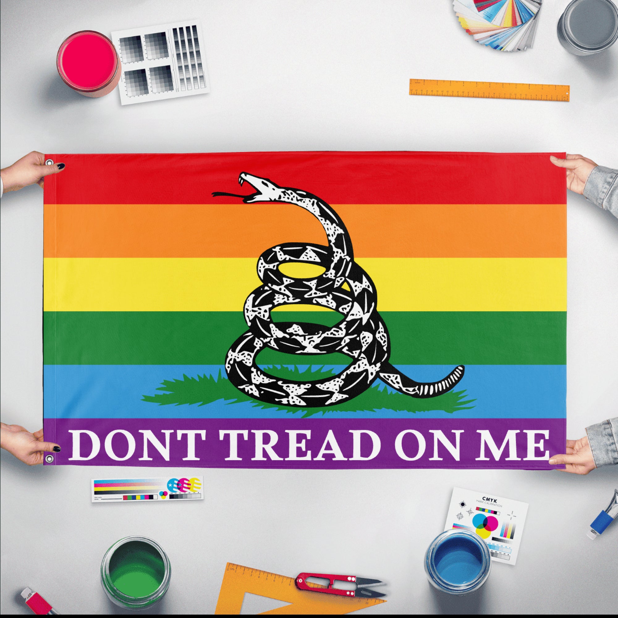✒️ The Gadsden Pride Flag is a fusion symbol combining elements of the historic Gadsden Flag with LGBTQ+ pride motifs. The original Gadsden Flag, featuring a coiled rattlesnake and the motto "Don't Tread on Me," dates back to the American Revolutionary War and symbolizes vigilance and resistance to oppression. The Gadsden Pride Flag adapts this imagery by incorporating rainbow colors or pride stripes to represent LGBTQ+ identities, merging themes of personal liberty and queer pride. While not an official or widely adopted flag, it is used by some within the LGBTQ+ community to express a spirit of defiance, freedom, and individuality.