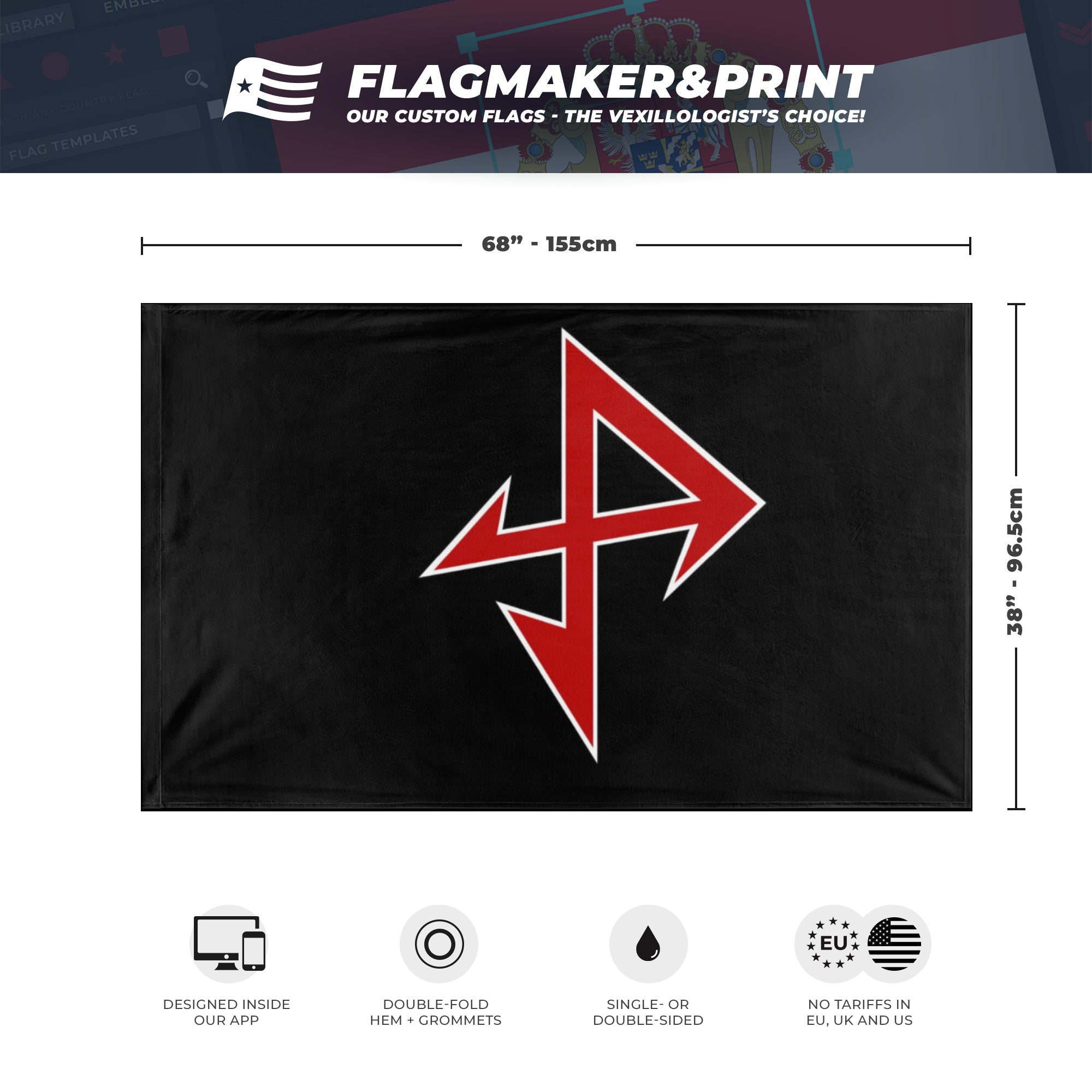 📐 Custom Flag made with Flagmaker & Print. Learn more about our product line-up on the Product Details page. This custom flag design is available as both a one-sided wall flag, or a double-sided display flag.