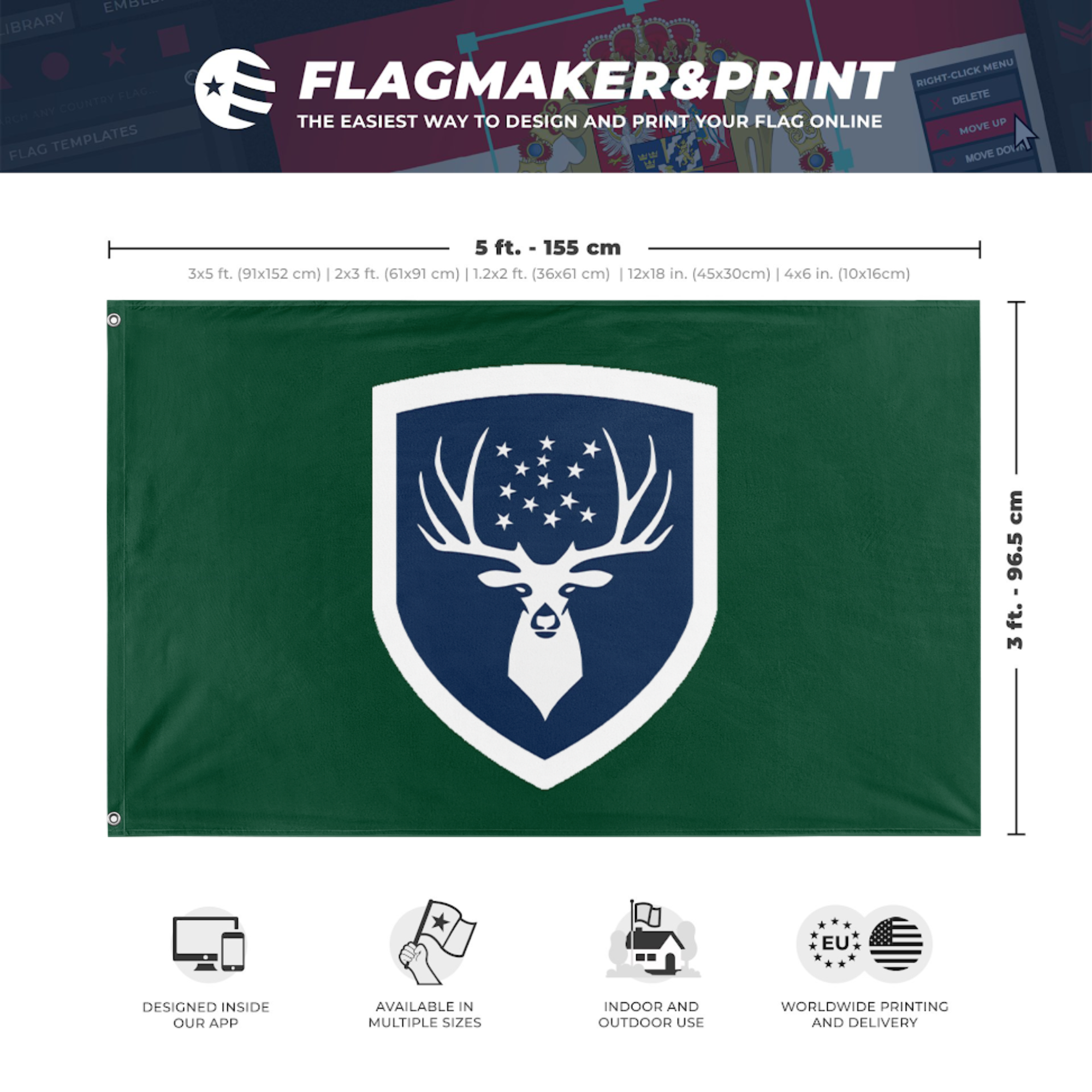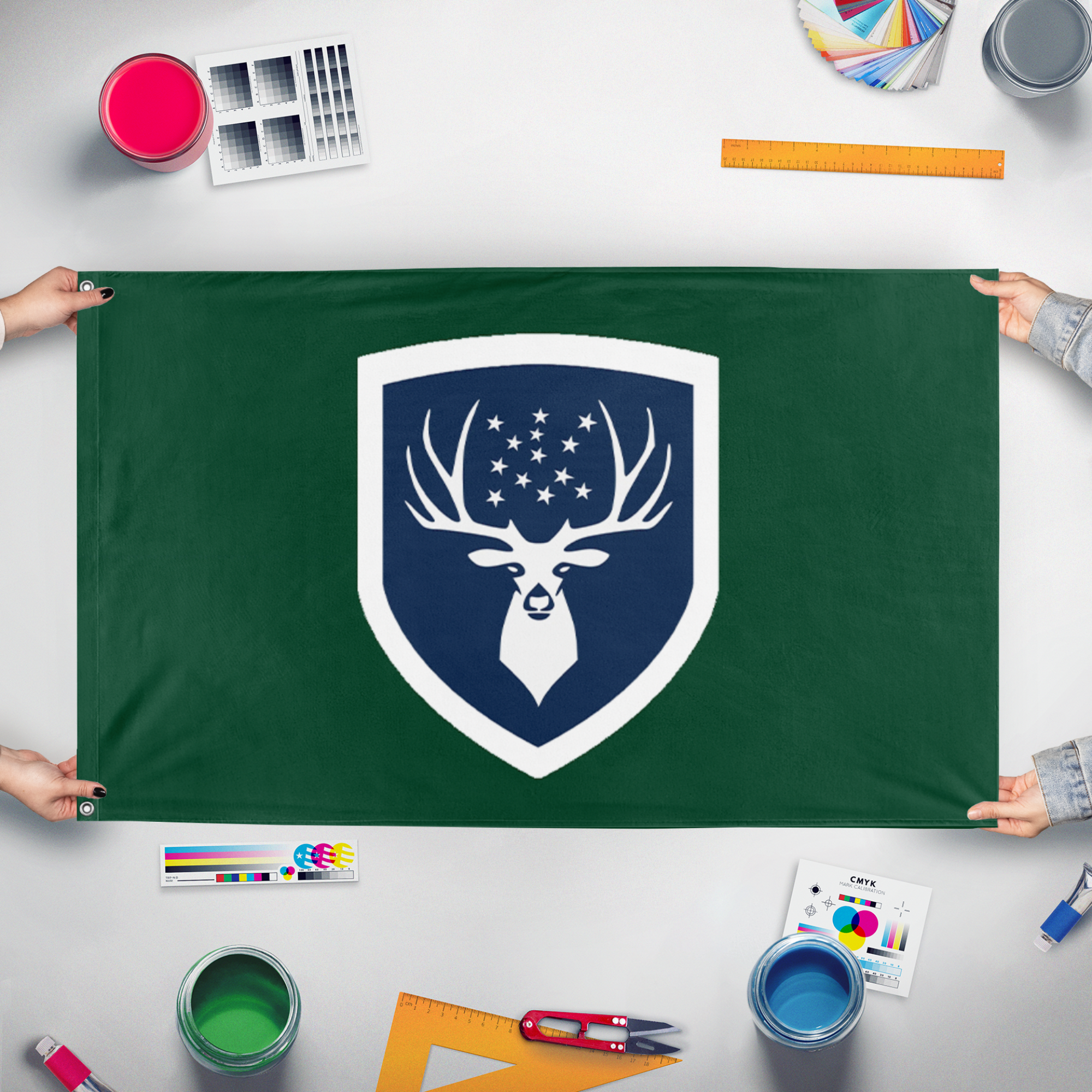 Our integrated flag maker app allows anyone to design and print their own flag. After finishing your design, you can print your flag in three easy steps.