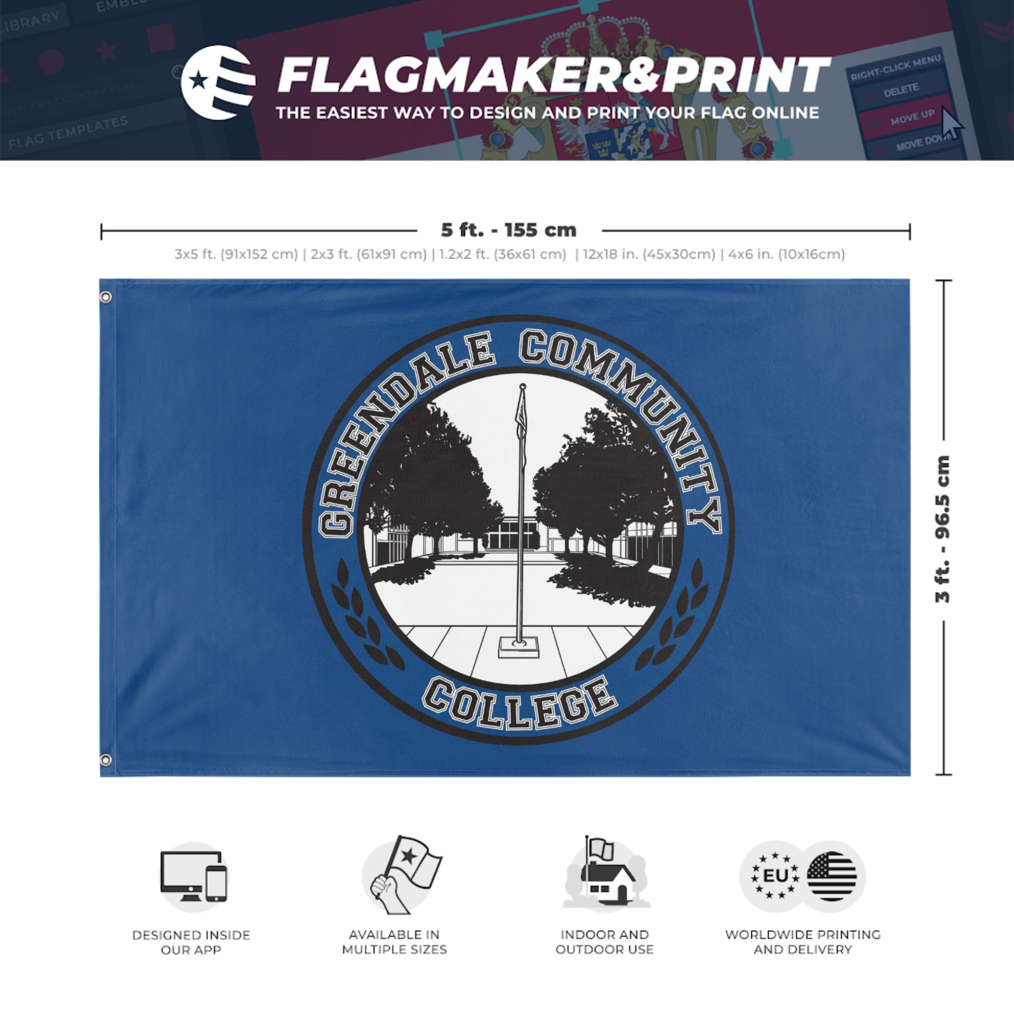 Our integrated flag maker app allows anyone to design and print their own flag. After finishing your design, you can print your flag in three easy steps.