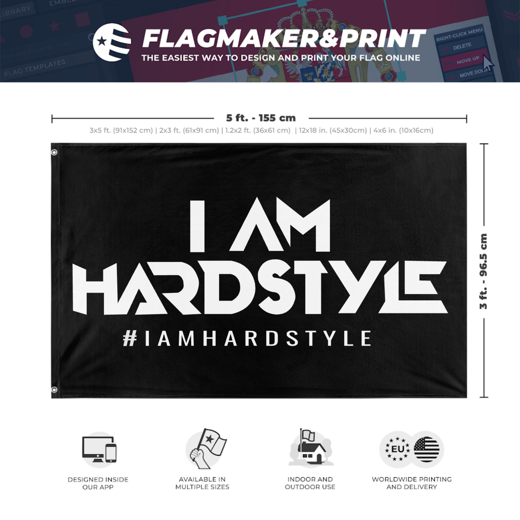 ✒️ The Hardstyle Flag is an emblem associated with the hardstyle genre of electronic dance music, which originated in the early 2000s in the Netherlands. Often incorporating bold, high-contrast visuals, geometric shapes, and dark, energetic color schemes such as black, red, and metallic tones, the flag symbolizes the intensity and power of the hardstyle music scene. It is frequently displayed at music festivals, rave events, and by fans as a marker of identity within the global hard dance community. The flag reflects the genre's themes of unity, rhythm, and high-tempo beats, serving as a visual counterpart to its pulsating soundscape.