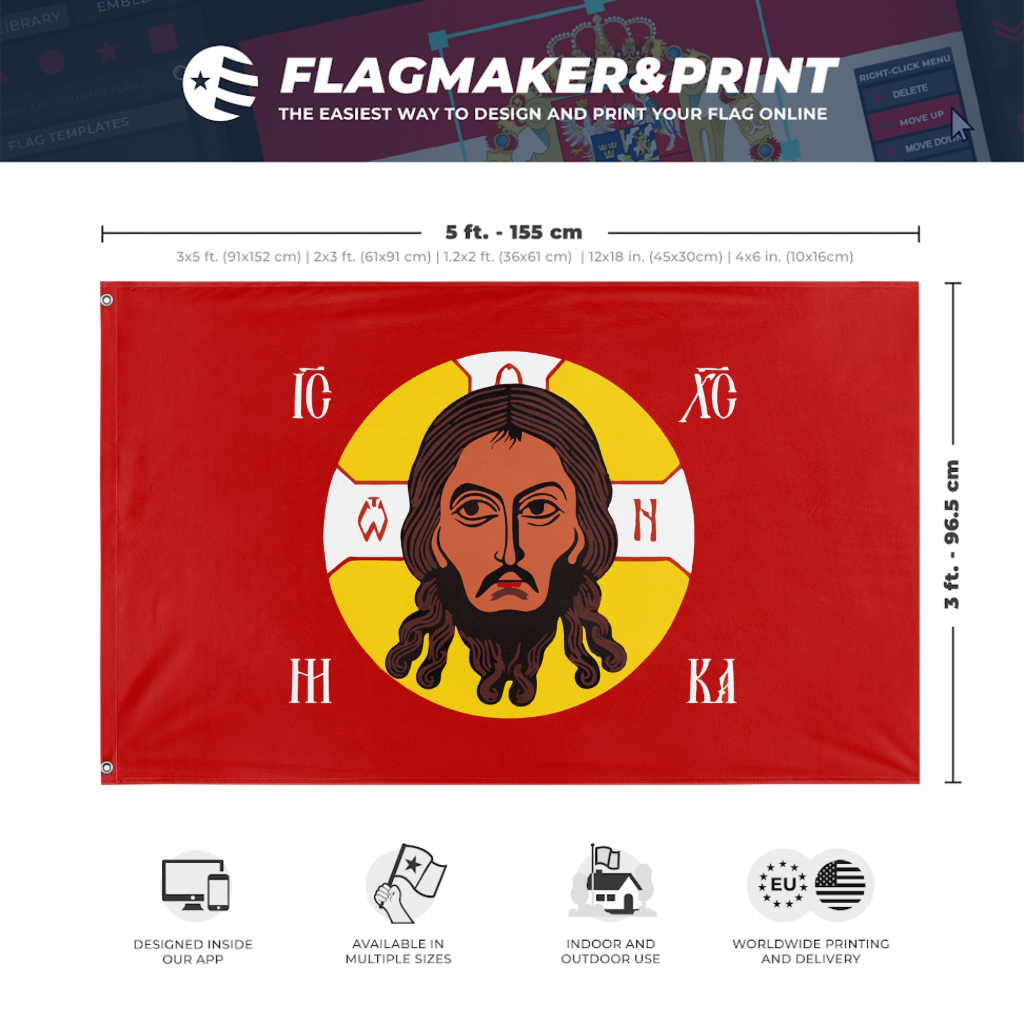 Our integrated flag maker app allows anyone to design and print their own flag. After finishing your design, you can print your flag in three easy steps.