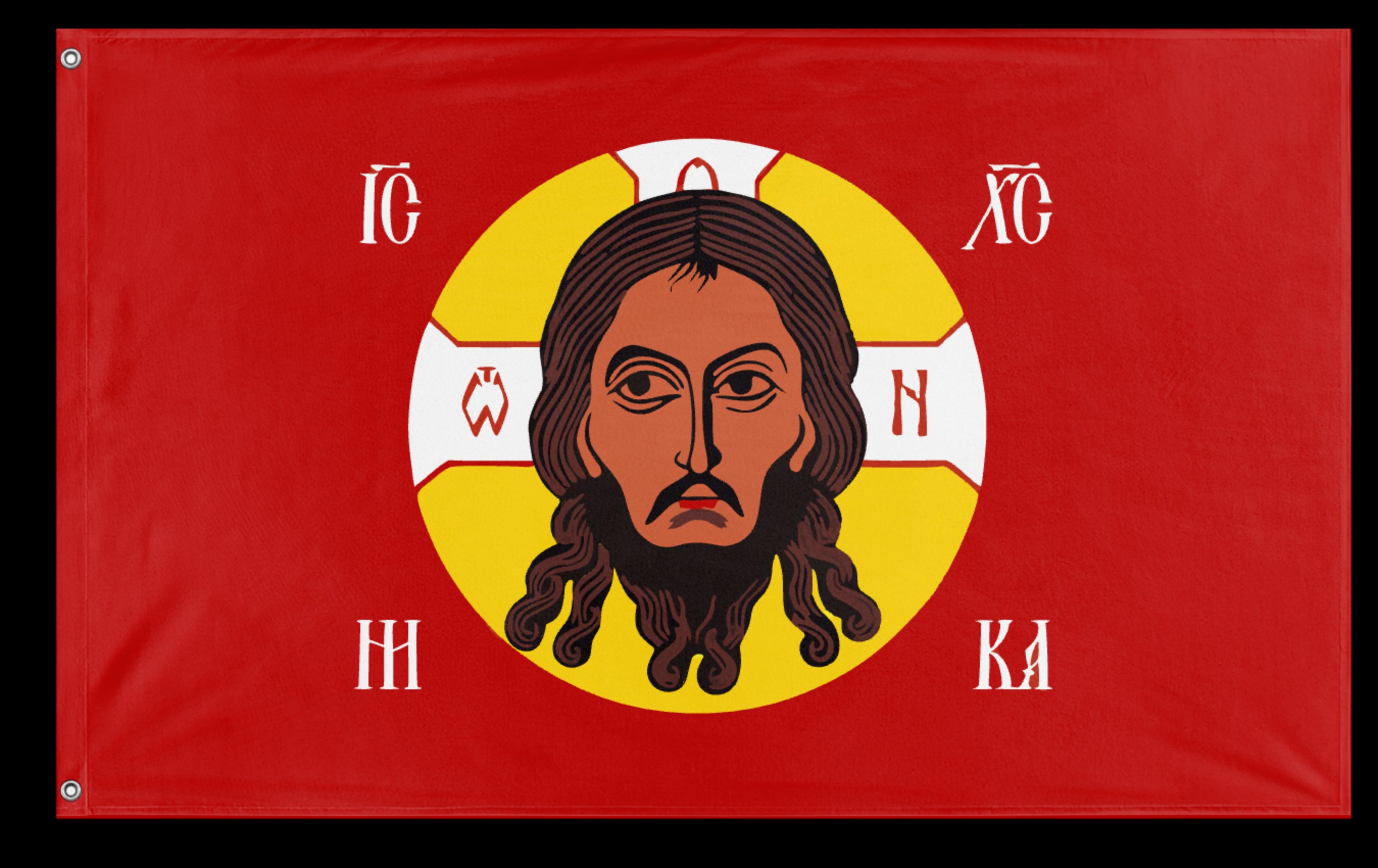 ✒️ The Holy Face of Christ Flag – Red is a devotional Christian banner that features the image of the Holy Face of Jesus Christ set against a red background. Drawing from traditional representations such as the Veil of Veronica and the Shroud of Turin, the image is venerated as a reflection of Christ’s divine countenance and sacrificial love. The red background symbolizes the blood of Christ, martyrdom, and redemption, underscoring themes central to the Passion narrative. This flag is often used in religious processions, prayer groups, and personal devotion as a visual expression of faith, repentance, and reverence for the suffering and mercy of Jesus Christ.