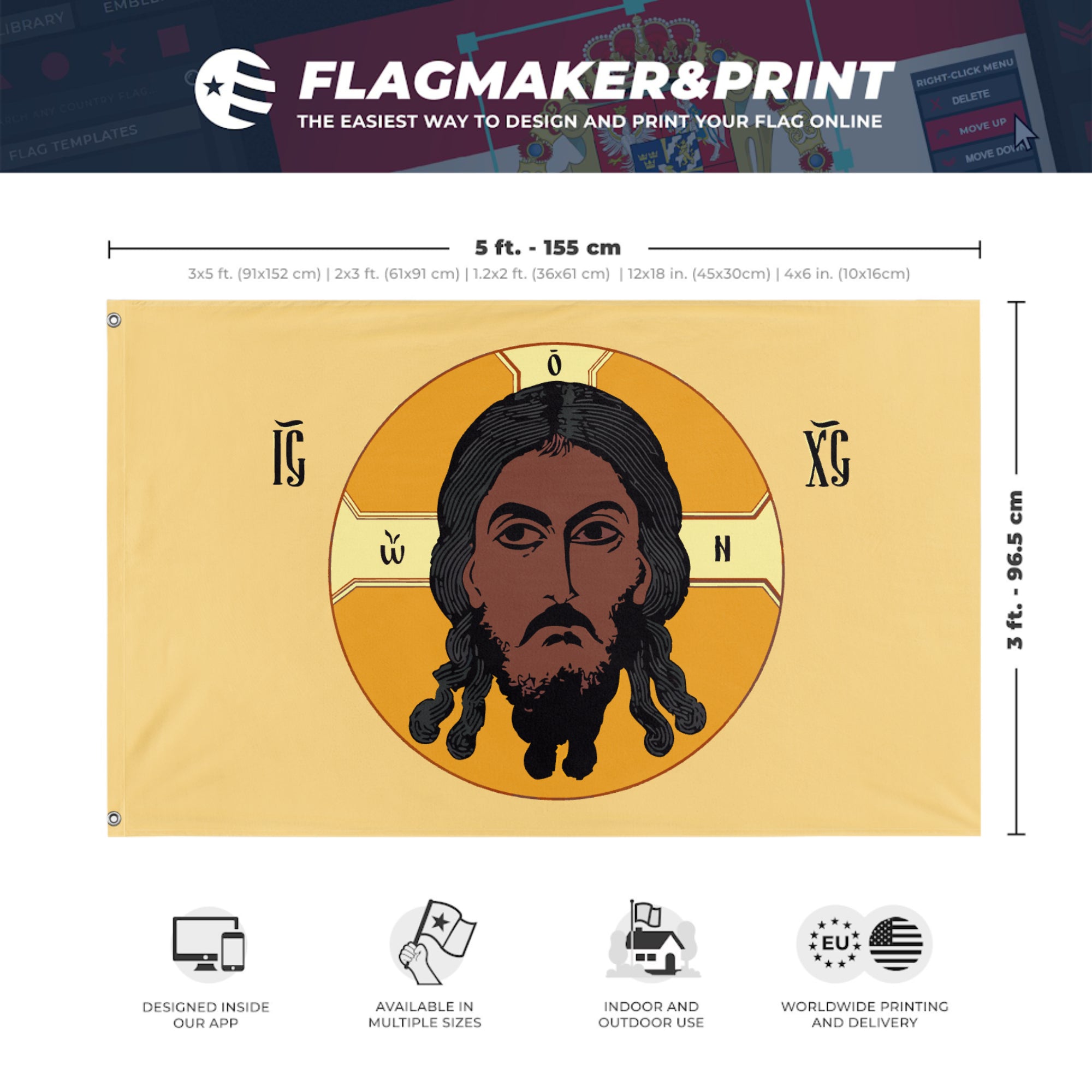 Our integrated flag maker app allows anyone to design and print their own flag. After finishing your design, you can print your flag in three easy steps.