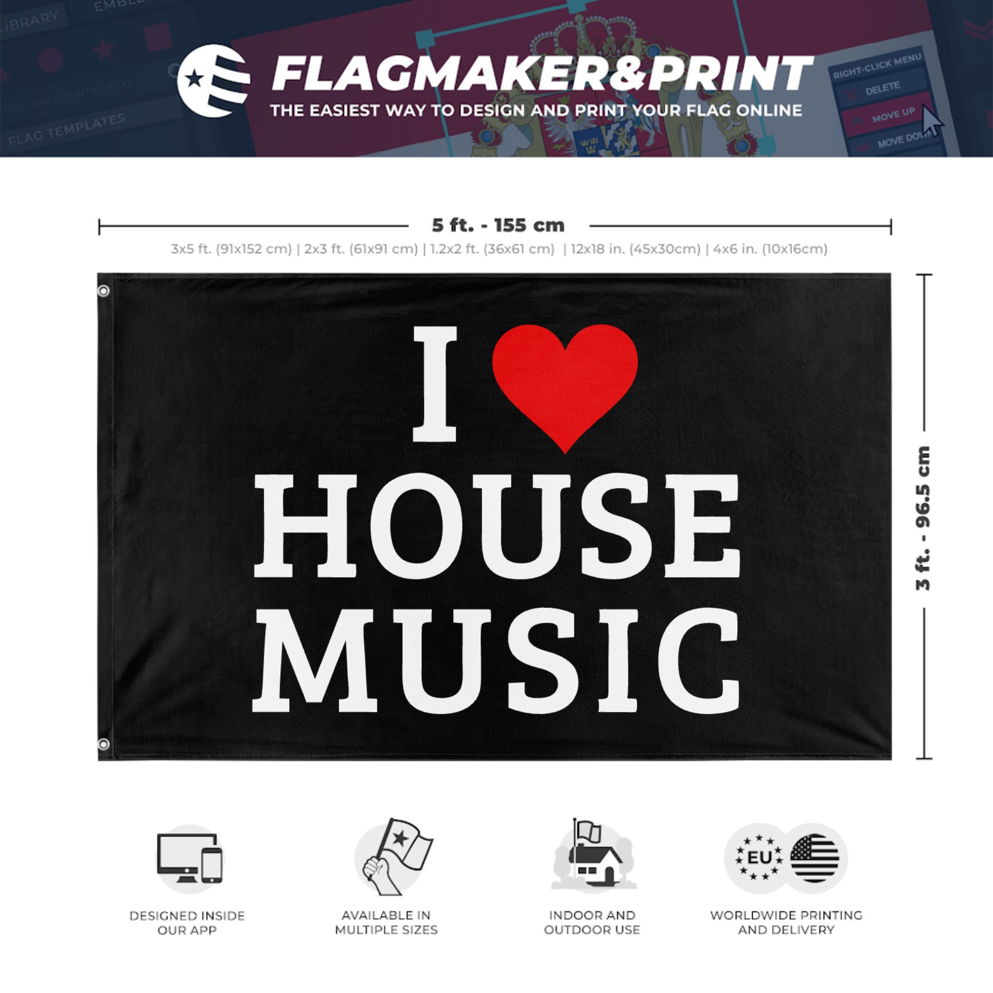 ✒️ The House Music Flag is a symbolic representation of the house music genre, which originated in Chicago during the early 1980s and later evolved into a global musical movement. Typically featuring vibrant colors, abstract patterns, and iconography such as turntables, sound waves, or dancing figures, the flag embodies the genre's core values of inclusivity, rhythm, and communal dance experiences. It is commonly seen at clubs, music festivals, and electronic music gatherings, serving as a visual identifier for fans and artists alike. The House Music Flag reflects the genre’s cultural roots in marginalized communities and its enduring influence on dance music worldwide.
