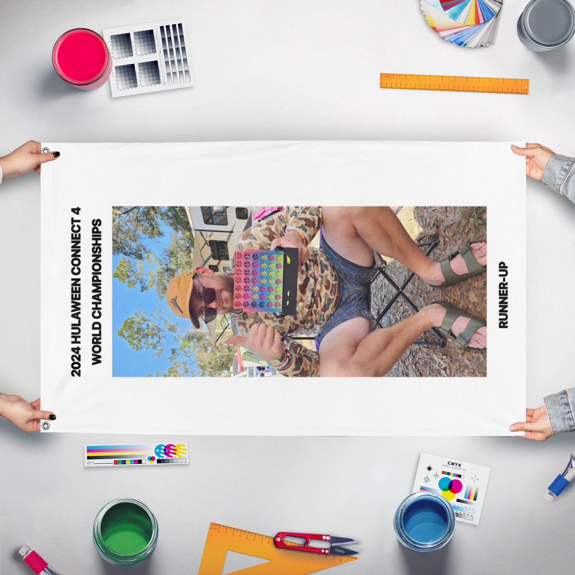 Our integrated flag maker app allows anyone to design and print their own flag. After finishing your design, you can print your flag in three easy steps.