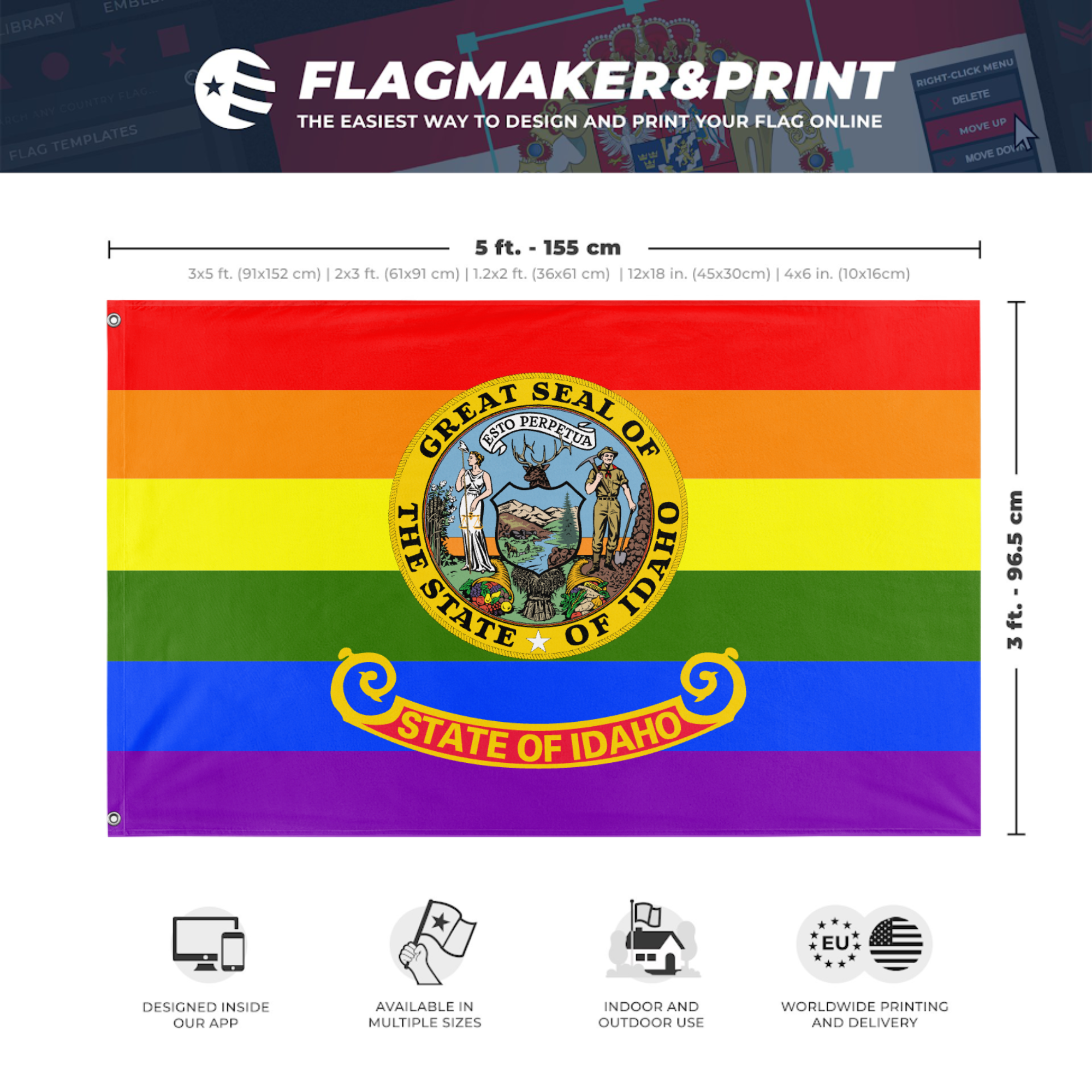 Our integrated flag maker app allows anyone to design and print their own flag. After finishing your design, you can print your flag in three easy steps.