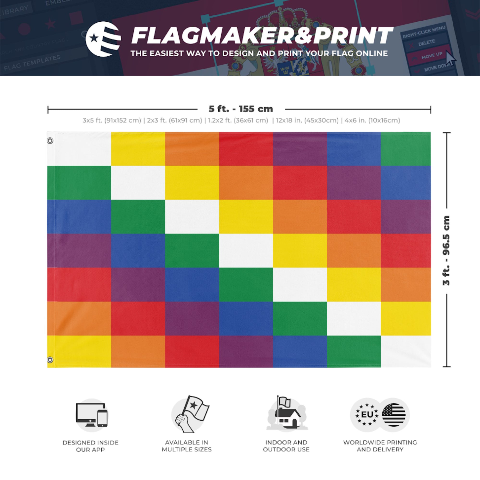 ✒️ The Wiphala is a square emblem commonly used as a flag to represent some native peoples of the Andes, including those in present-day Bolivia, Peru, Chile, Ecuador, northwestern Argentina, and southern Colombia. Composed of a 7x7 square patchwork in seven colors, arranged diagonally, the Wiphala's precise configuration varies depending on the specific suyu (region) of the Inca Empire it represents. While often associated with the Inca, its design is thought to predate the empire, with the oldest surviving example dating back to the Tiwanaku culture (1580 BC – AD 1187). Each of the seven colors holds distinct meanings, reflecting the diverse cultures, landscapes, and philosophical principles of the Andean peoples. Since 2009, the Qullasuyu Wiphala has been recognized as a national symbol of Bolivia, alongside its main flag, and it has gained prominence as a symbol of indigenous identity, unity, and resistance in social movements across the region.