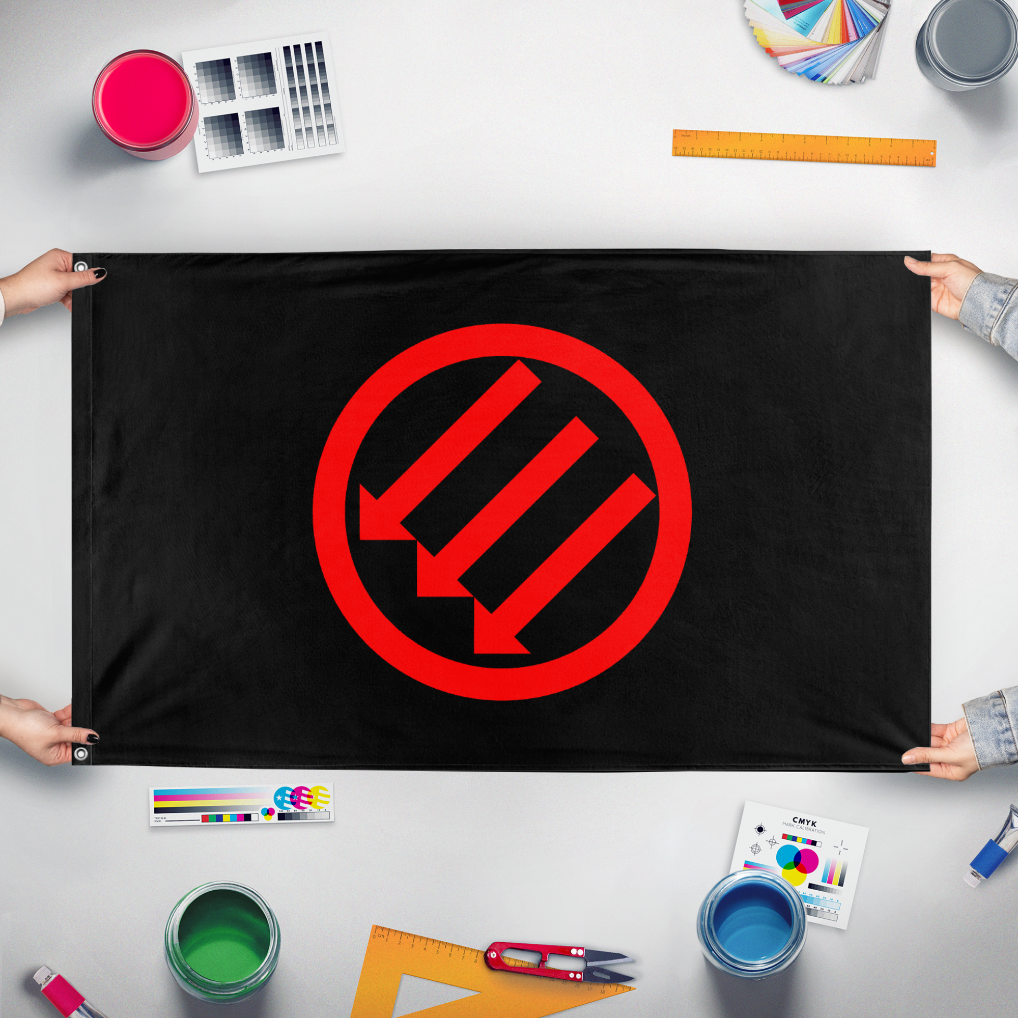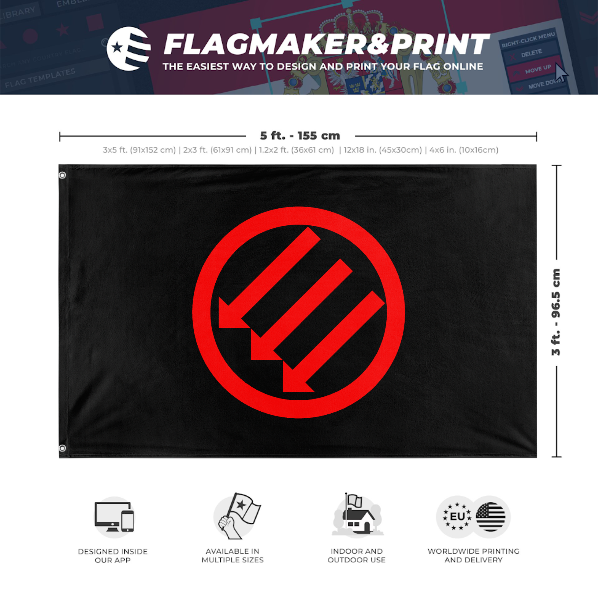 Our integrated flag maker app allows anyone to design and print their own flag. After finishing your design, you can print your flag in three easy steps.
