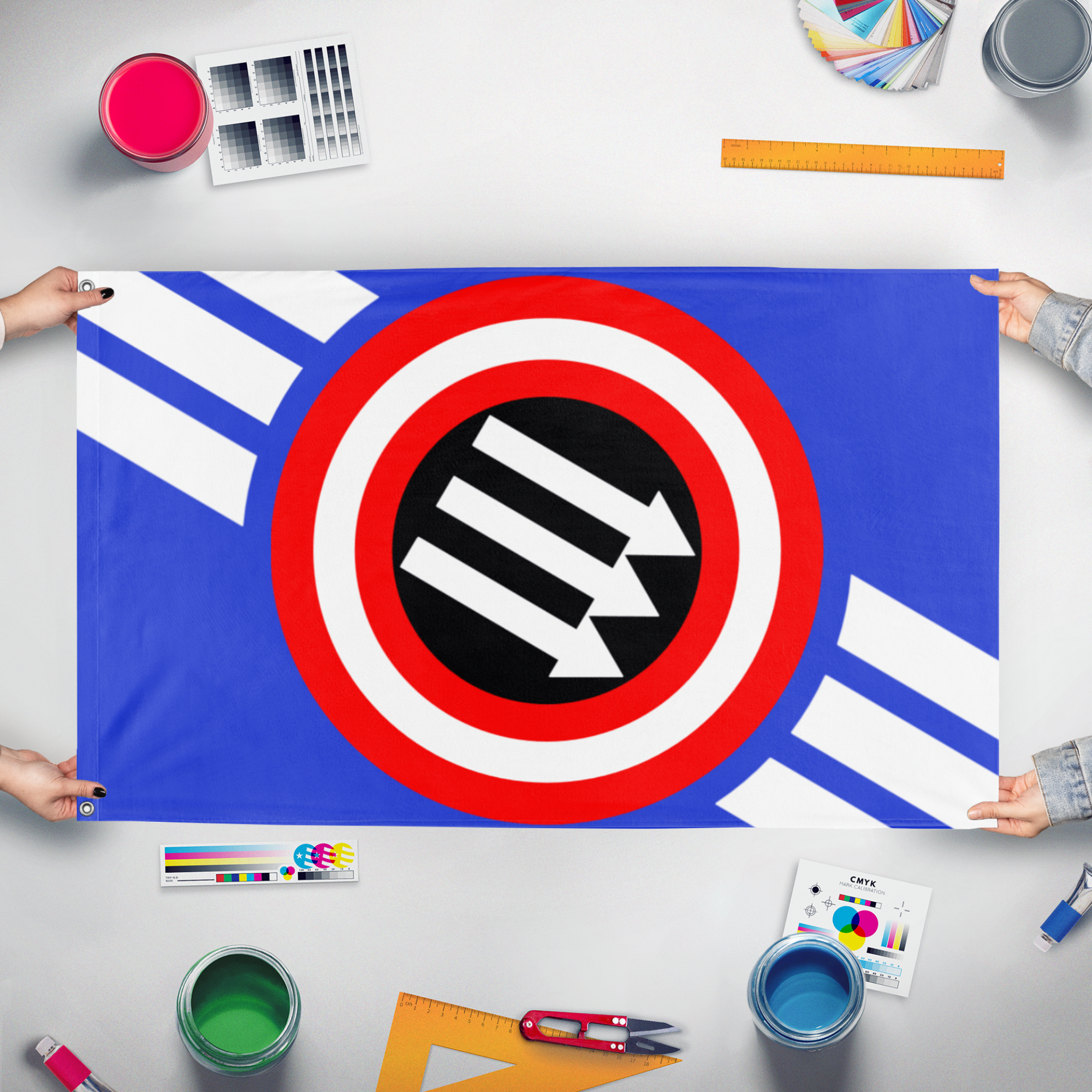 Our integrated flag maker app allows anyone to design and print their own flag. After finishing your design, you can print your flag in three easy steps.