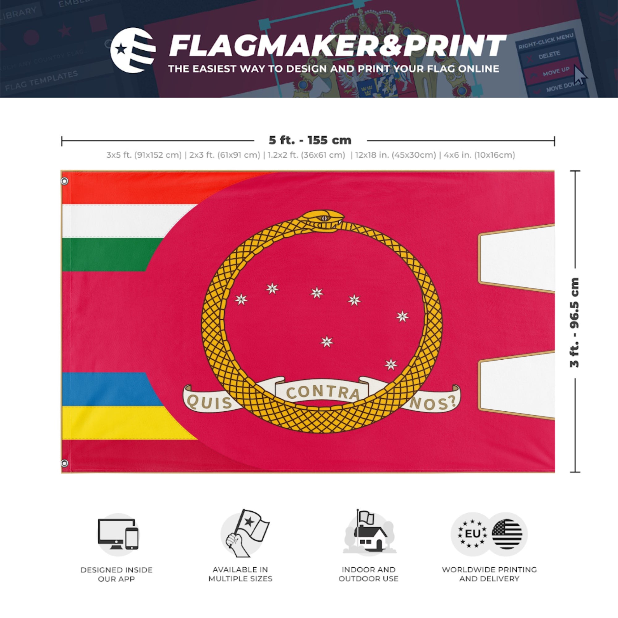 📐 Custom Personalized Flag made with Flagmaker & Print. Learn more about our product line-up on the Product Details page. This custom flag design is available as both a one-sided wall flag, or a double-sided display flag