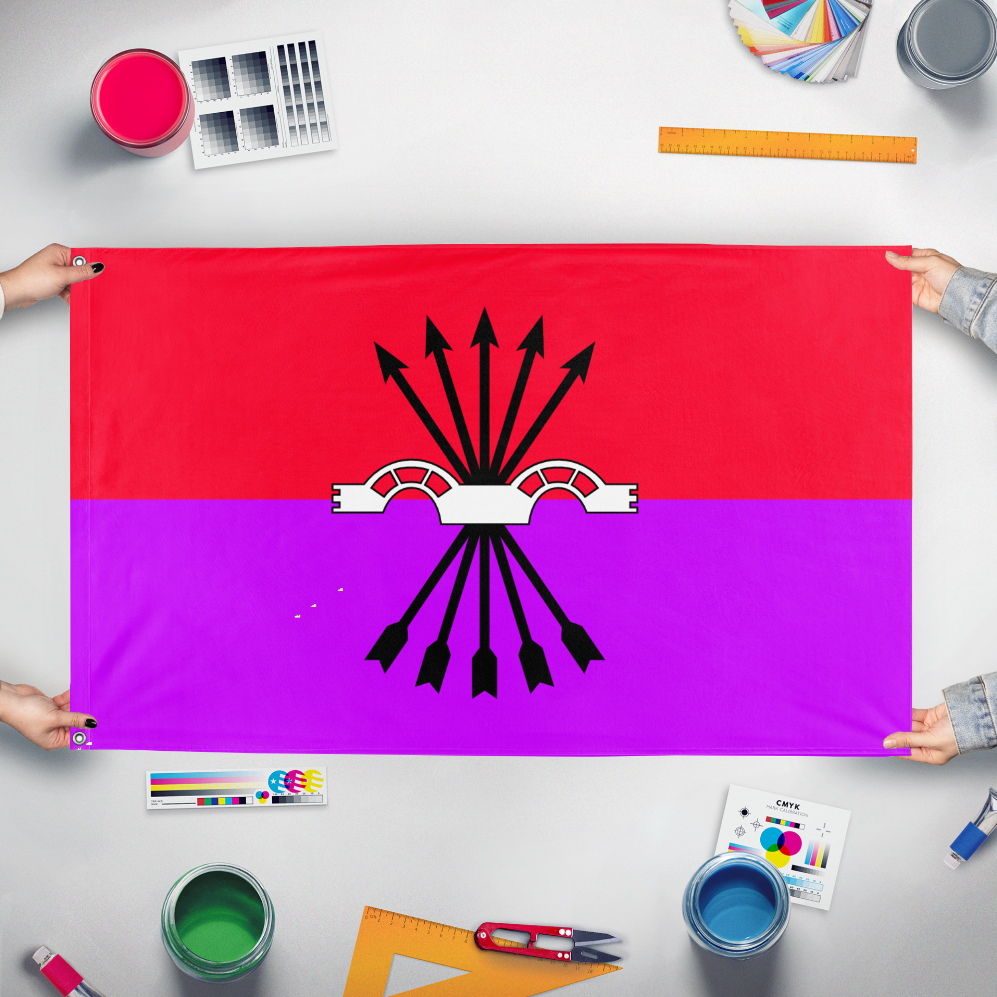 Our integrated flag maker app allows anyone to design and print their own flag. After finishing your design, you can print your flag in three easy steps.