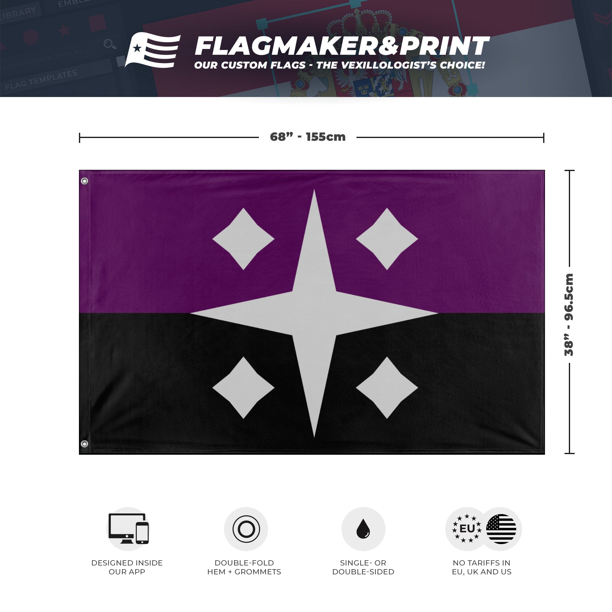 📐 Custom Personalized Flag made with Flagmaker & Print. Learn more about our product line-up on the Product Details page. This custom flag design is available as both a one-sided wall flag, or a double-sided display flag