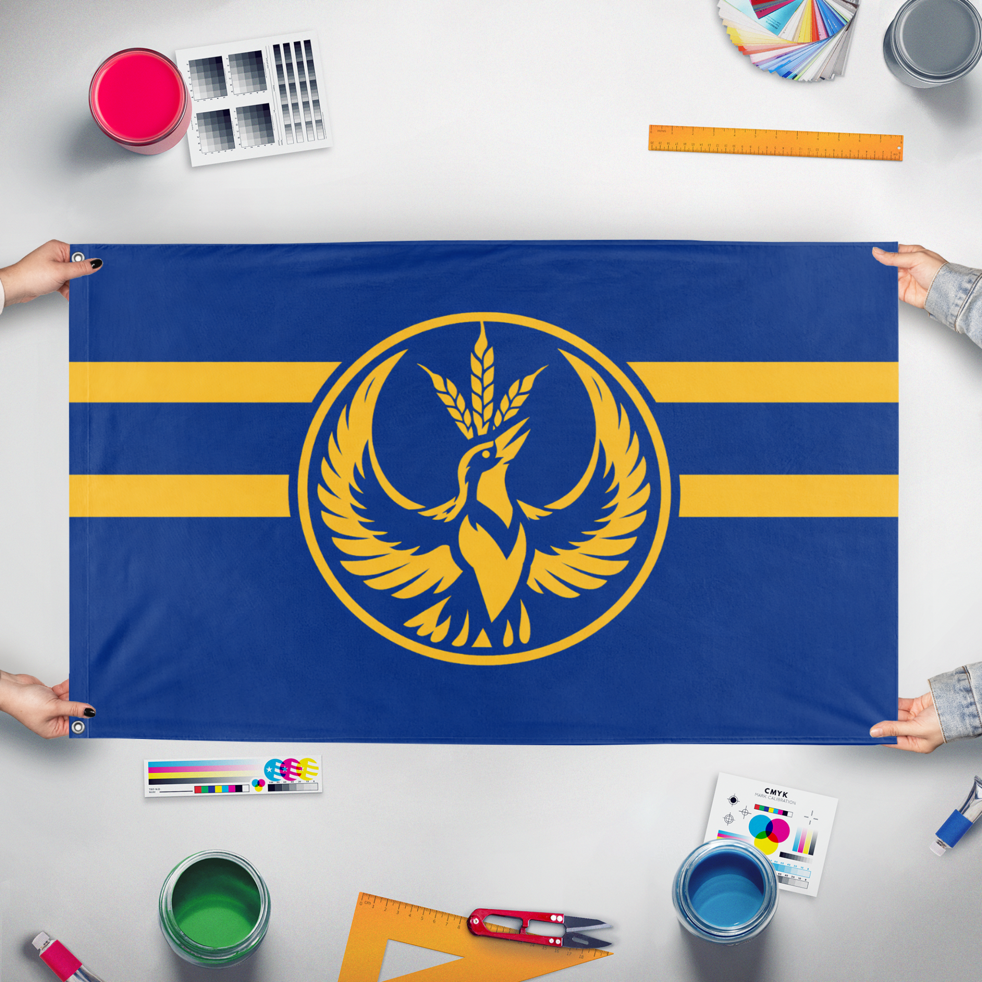 Our integrated flag maker app allows anyone to design and print their own flag. After finishing your design, you can print your flag in three easy steps.