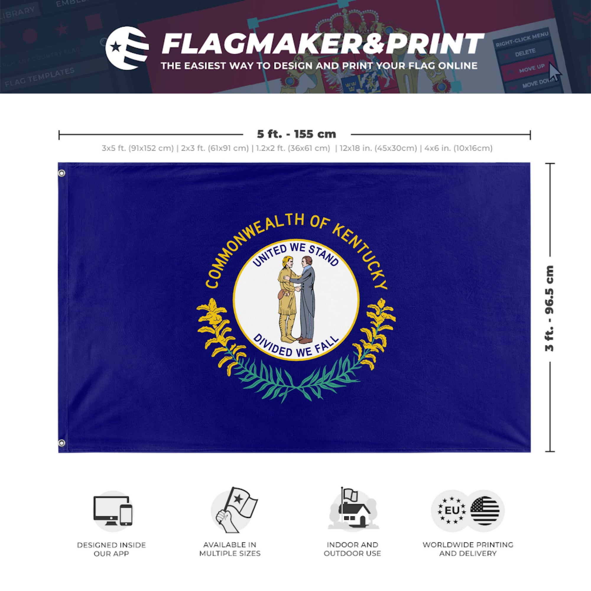 Our integrated flag maker app allows anyone to design and print their own flag. After finishing your design, you can print your flag in three easy steps.