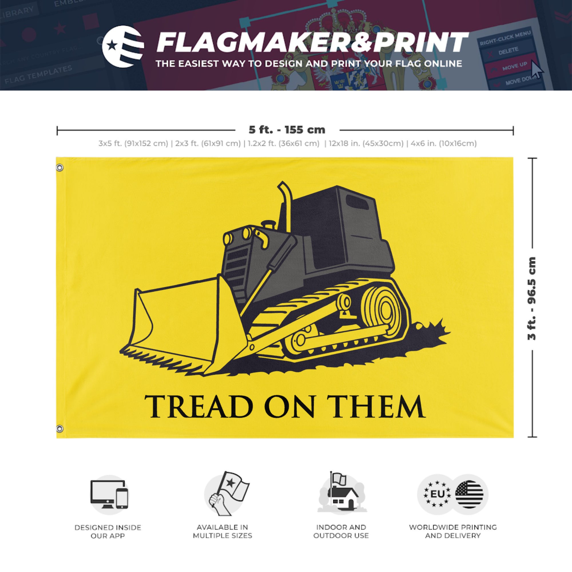 Our integrated flag maker app allows anyone to design and print their own flag. After finishing your design, you can print your flag in three easy steps.