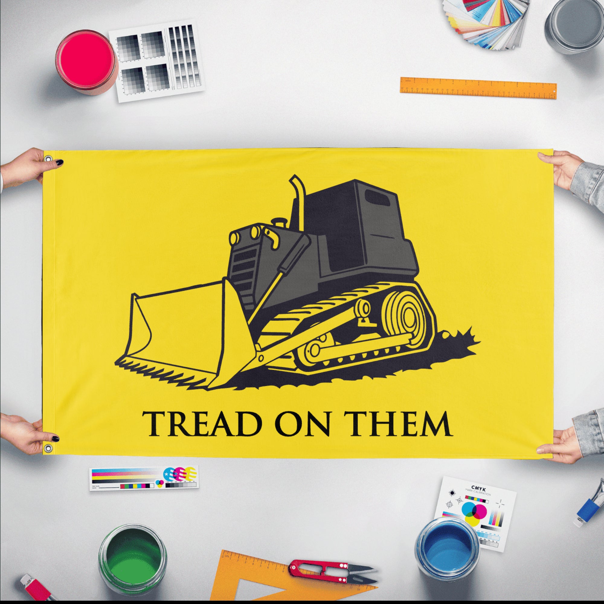 ✒️ The "Killdozer Tread On Them" flag is an unofficial emblem inspired by the 2004 Killdozer incident, where Marvin Heemeyer used an armored bulldozer to confront local authorities amid a personal dispute. The flag typically features imagery of a bulldozer, often combined with aggressive or defiant slogans that echo the original Gadsden flag’s spirit of resistance, such as "Tread On Them" instead of "Don't Tread on Me." It symbolizes a forceful stance against perceived injustice or control, embodying themes of rebellion and ungovernability. Though not officially recognized, the flag is embraced by some as a provocative icon of individual defiance and anti-authoritarian sentiment.