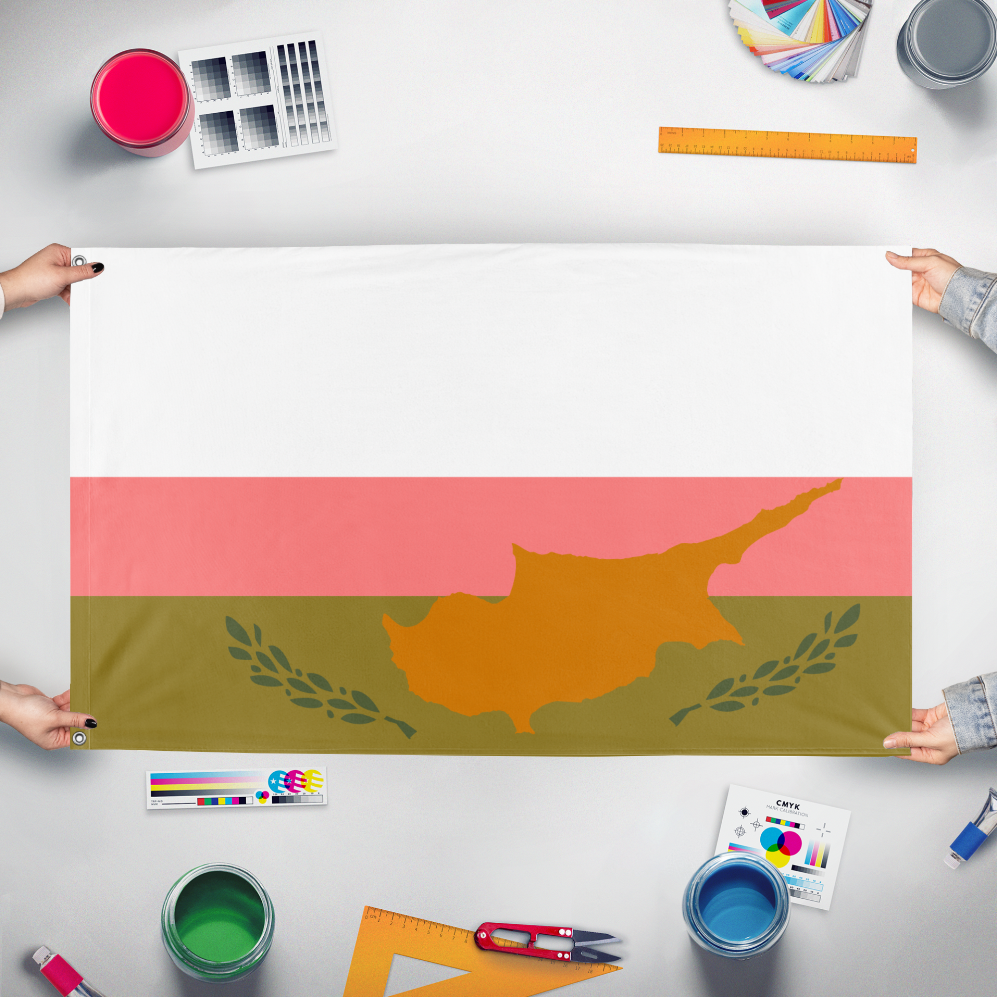 Our integrated flag maker app allows anyone to design and print their own flag. After finishing your design, you can print your flag in three easy steps.