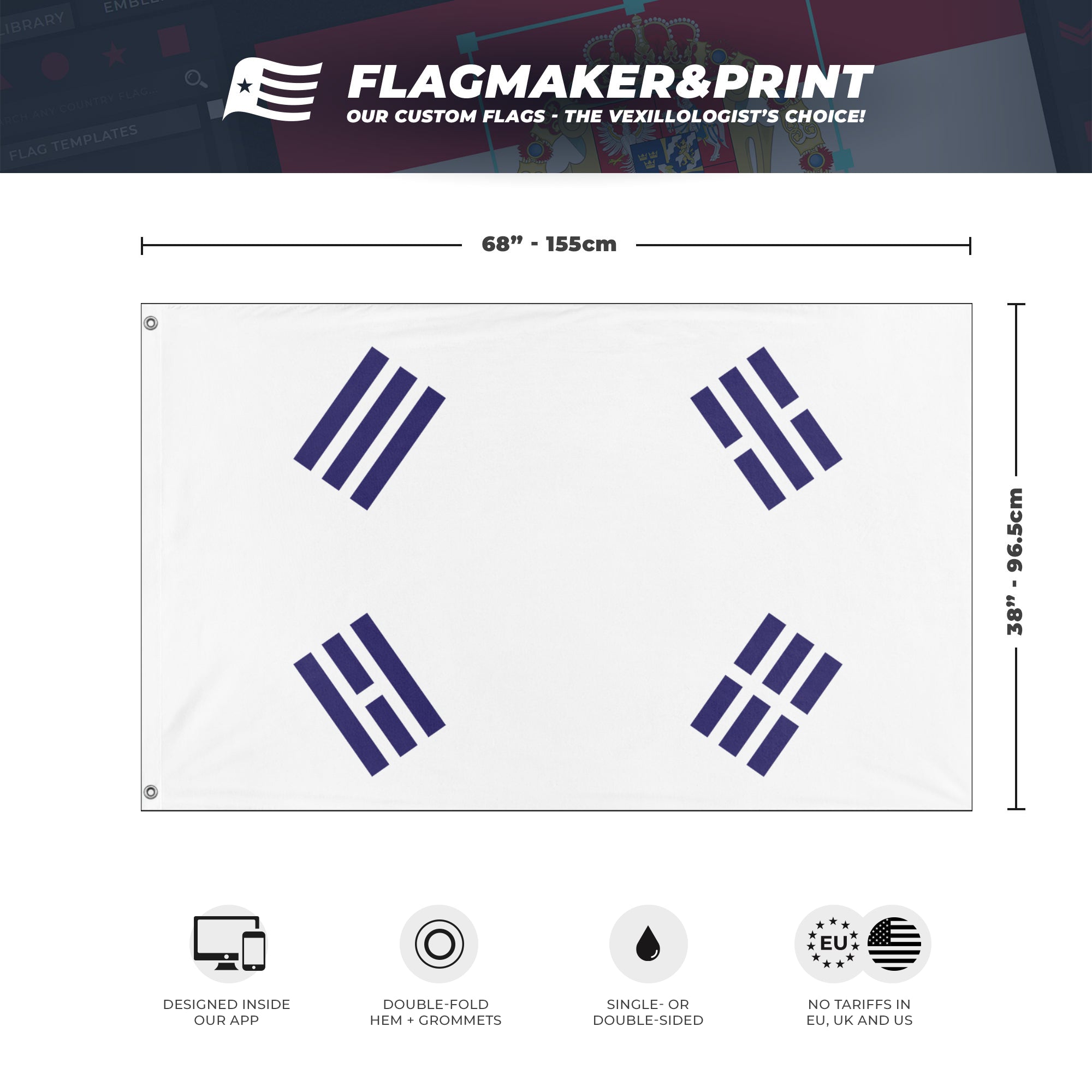 📐 Custom Personalized Flag made with Flagmaker & Print. Learn more about our product line-up on the Product Details page. This custom flag design is available as both a one-sided wall flag, or a double-sided display flag