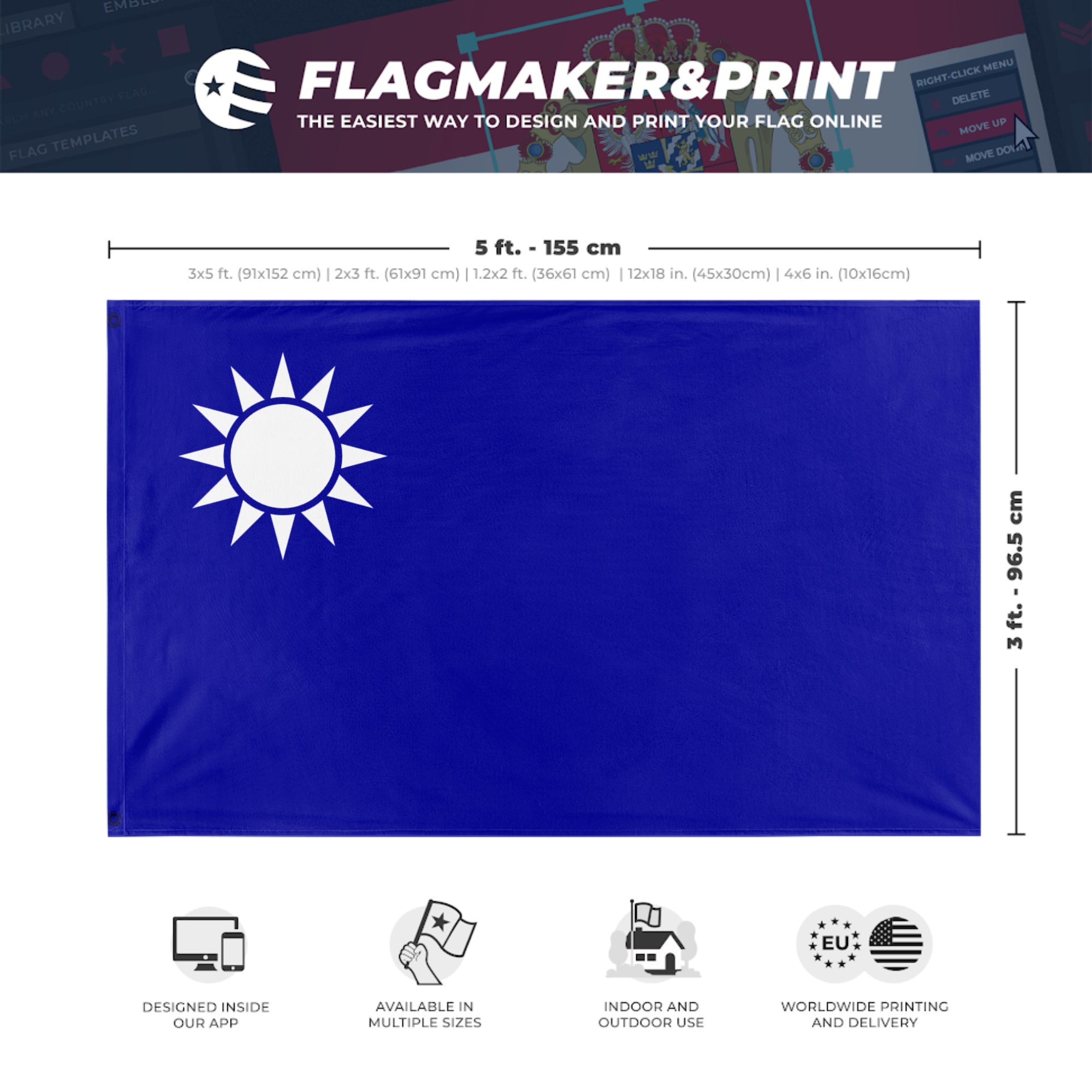 ✒️ he Kuomintang (KMT) Party Flag features a white sun with twelve rays on a blue field, symbolizing the spirit of progress and democracy. Designed by Lu Hao-tung in 1895, the flag became the emblem of the Chinese nationalist movement and the official symbol of the Kuomintang party led by Sun Yat-sen.