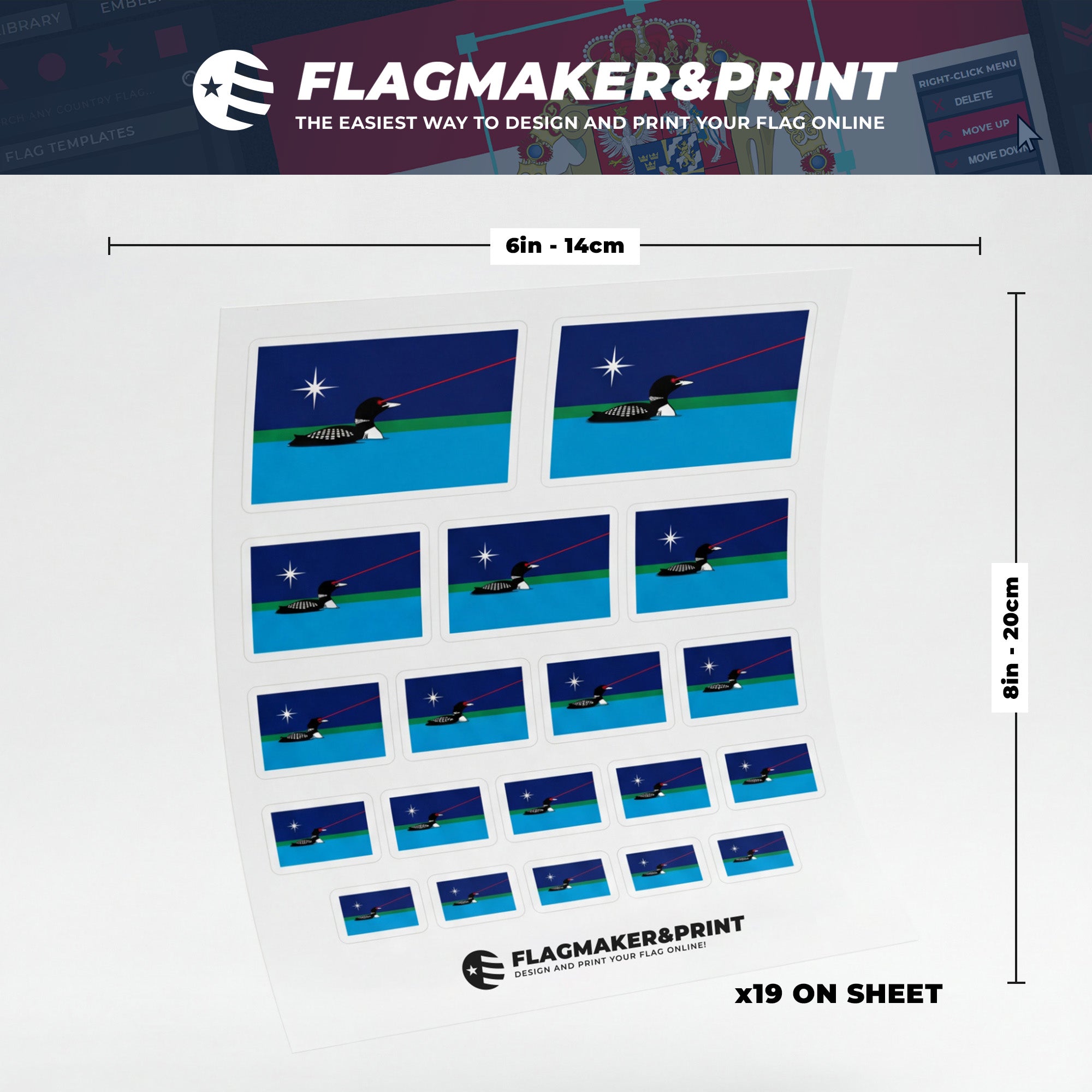 The Minnesota Laser Loon flag is a contemporary protest banner and unofficial regional emblem that emerged from grassroots civic activism in Minnesota. The design features a stylised common loon—the state bird of Minnesota—on a field incorporating the state’s lakes and forests, with the loon depicted as emitting a red laser beam from its eye in satirical defiance of perceived federal overreach. While not an official state flag, the Laser Loon motif was widely circulated during Minnesota’s 2023–24 state flag redesign contest as a meme-inspired bid that drew on regional pride and internet culture; the imagery has since been adopted and adapted in various protest and merchandise contexts.