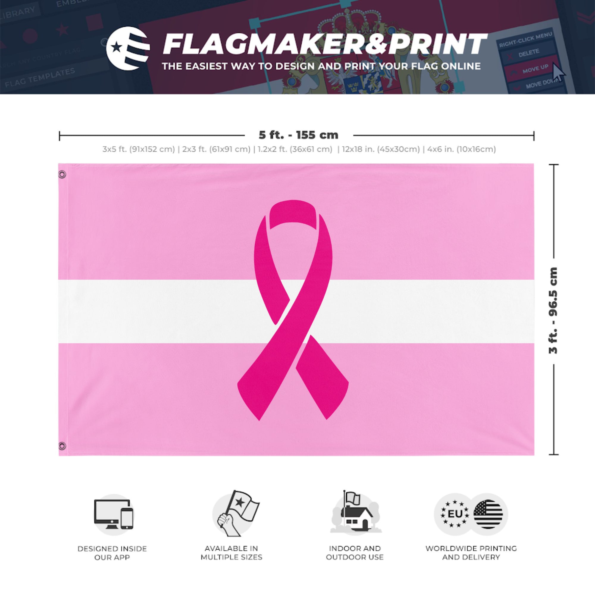 Our integrated flag maker app allows anyone to design and print their own flag. After finishing your design, you can print your flag in three easy steps.
