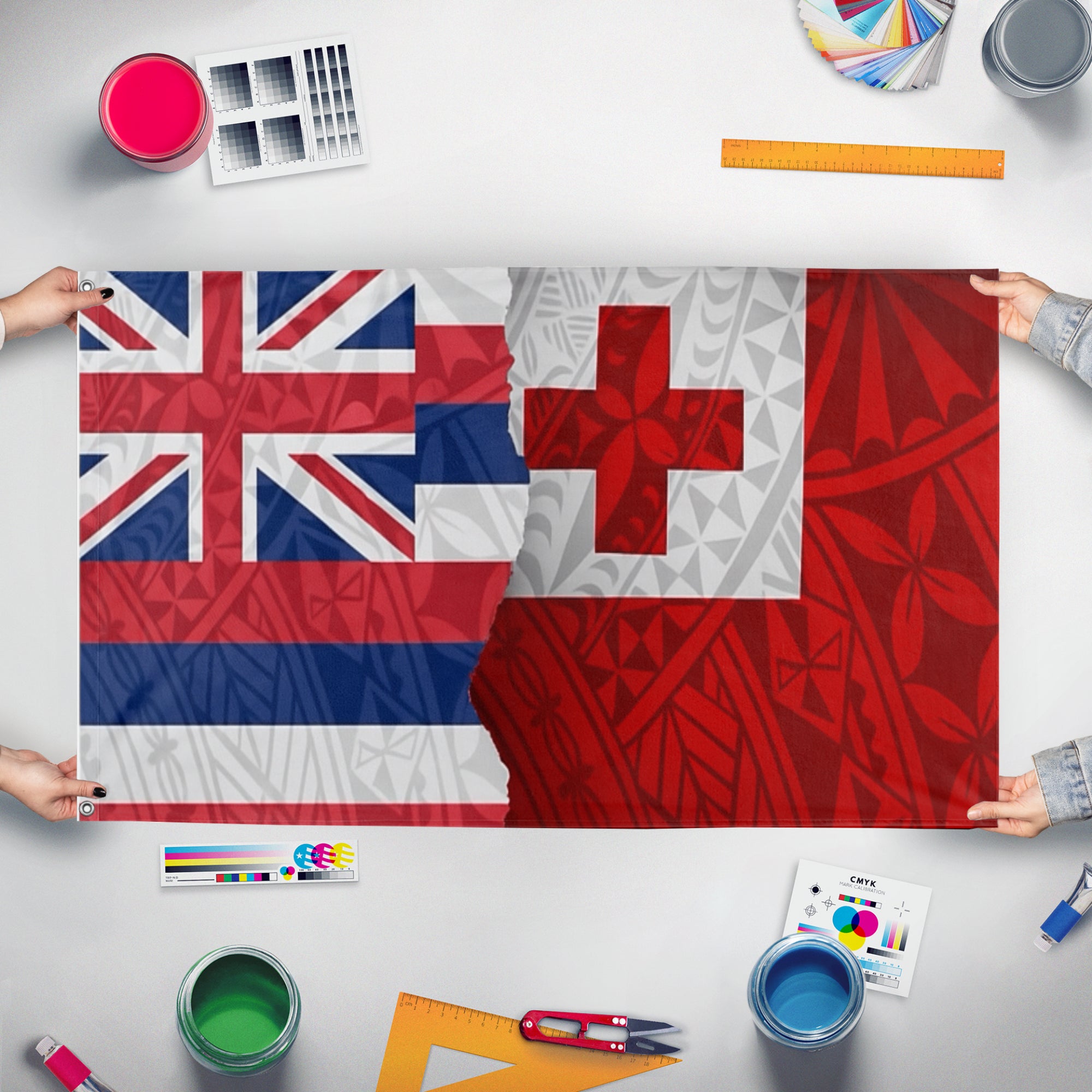 Flagmaker & Print offers best-of-class custom flags in over 32 sizes and variations. Our custom flag print offering ranges from 3x5ft outdoors flags to small desk and hand-waving flags.