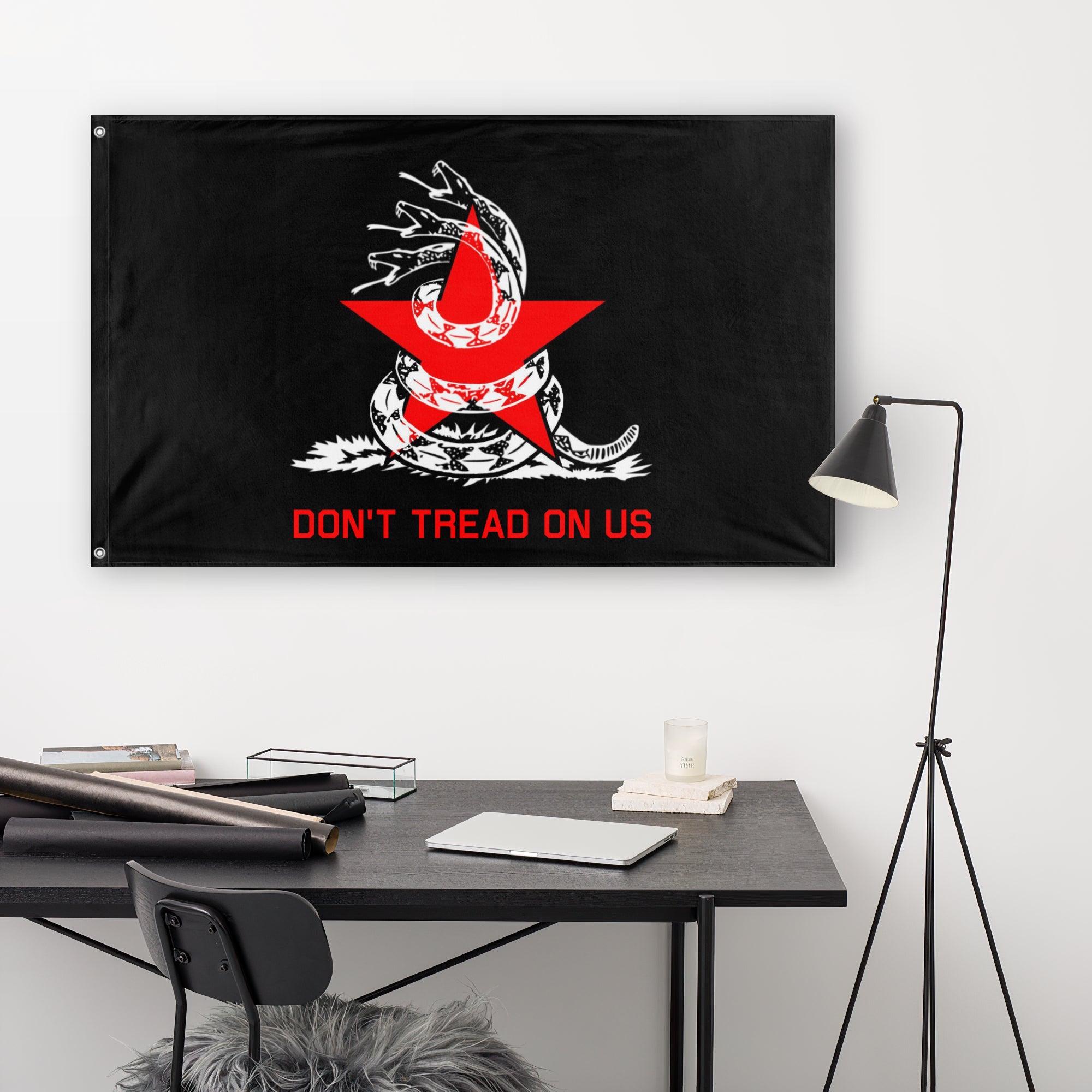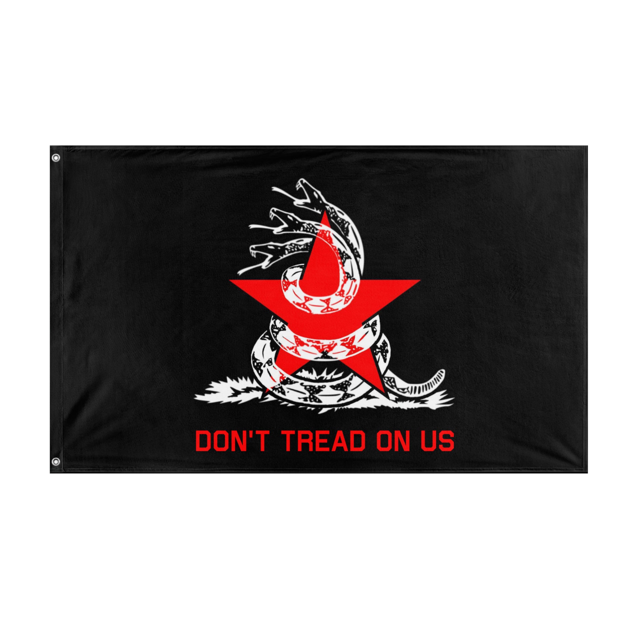 From u/TubelessADY: I added 2 more snake heads to make a hydra. This represents solidarity among, shut up don't say it, working class and marginalized people. The hydra is wrapped around and protecting the red star. The red star represents socialism. I changed the "Don't Tread On Me" to "Don't Tread On Us" to show fighting oppression, the state and capitalism, through mutual aid and community self-defense. u/The_Blue_Empire "Would you mind if I make this into a flag? https://flagmaker-print.com/" u/TubelessADY "Knock yourself out. Share me a picture when you get the flag irl."