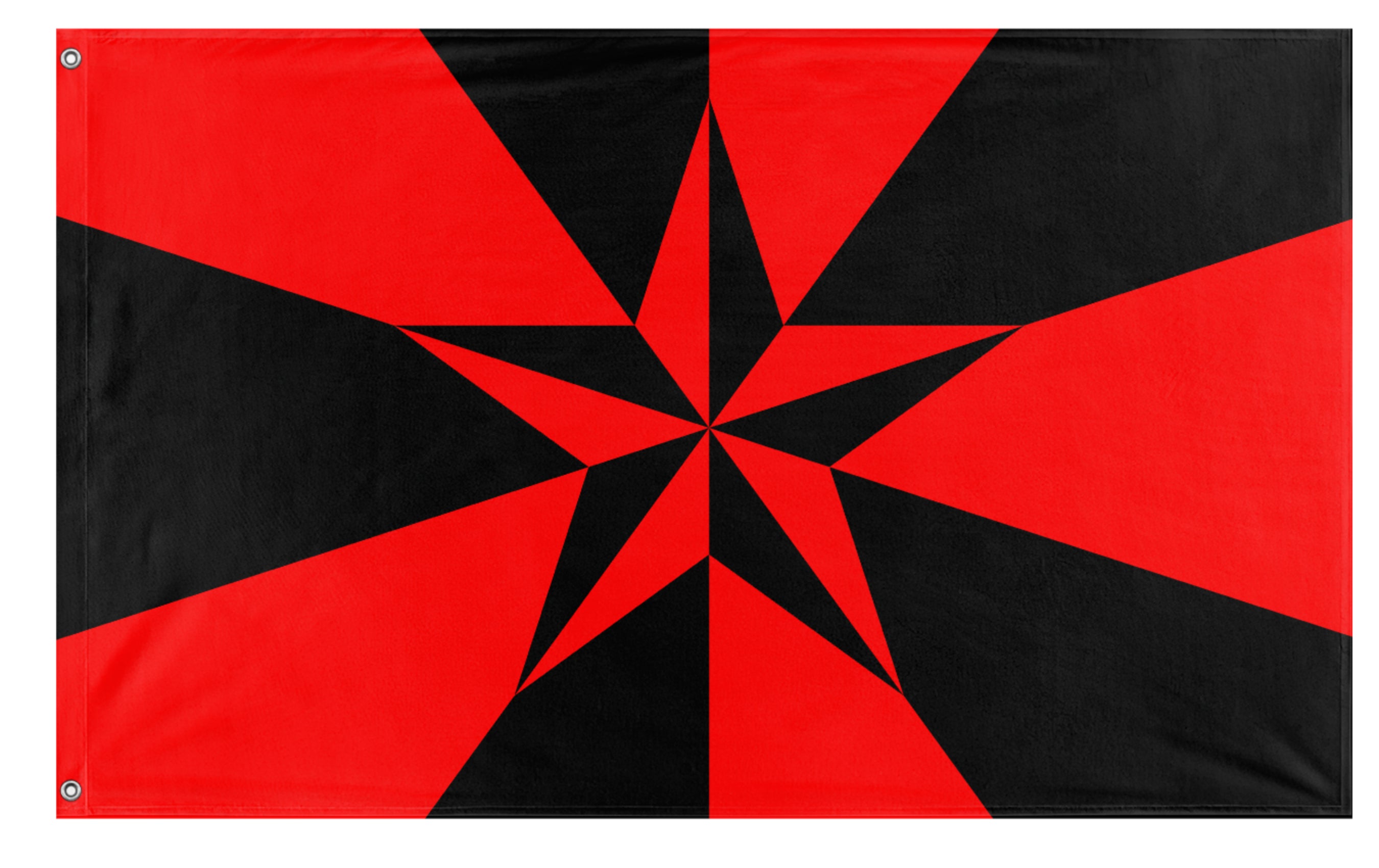 ✒️ The Flag of Libertarian Socialism is an unofficial contemporary emblem featuring a striking red-and-black color scheme traditionally associated with libertarian socialist and anarcho-syndicalist movements. The design consists of a central, eight-pointed starburst arranged in an “X” configuration, with alternating red and black triangular rays extending outward to the edges of the flag. This high-contrast geometric pattern symbolizes decentralisation, solidarity, and anti-authoritarian political philosophy. While it does not correspond to a historic standardized banner, the flag draws clear inspiration from the long-standing use of red-and-black motifs in left-libertarian ideology. Its modern, angular composition reflects both historical influences and contemporary digital reinterpretations commonly used in online political communities and meme-based activism associated with libertarian socialist thought.