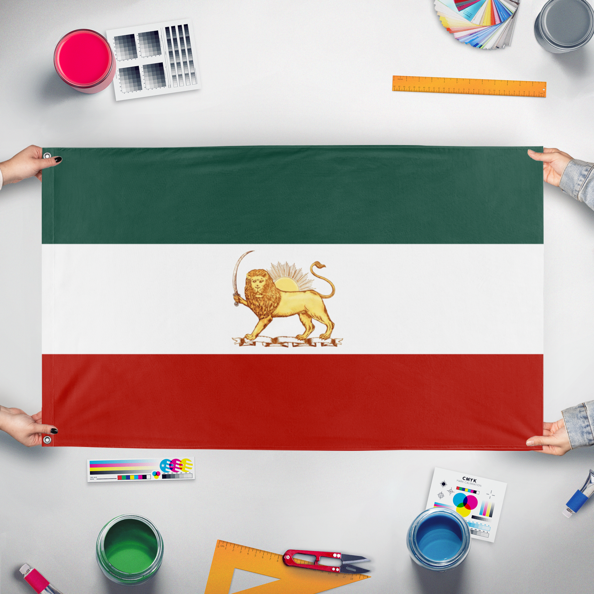 Our integrated flag maker app allows anyone to design and print their own flag. After finishing your design, you can print your flag in three easy steps.