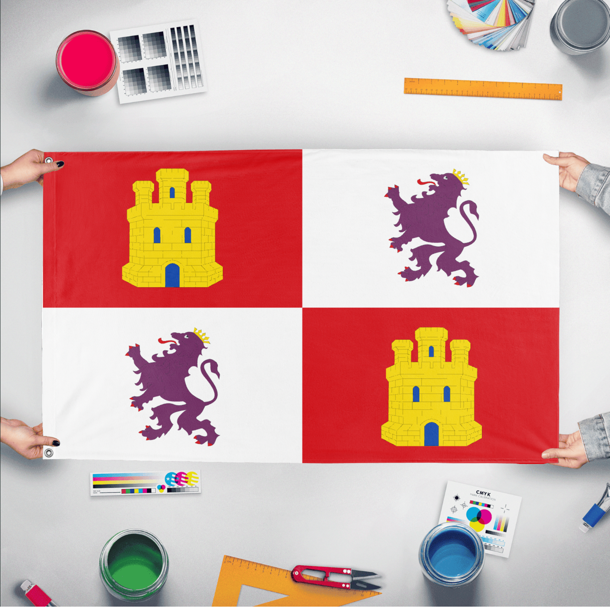 Our integrated flag maker app allows anyone to design and print their own flag. After finishing your design, you can print your flag in three easy steps.