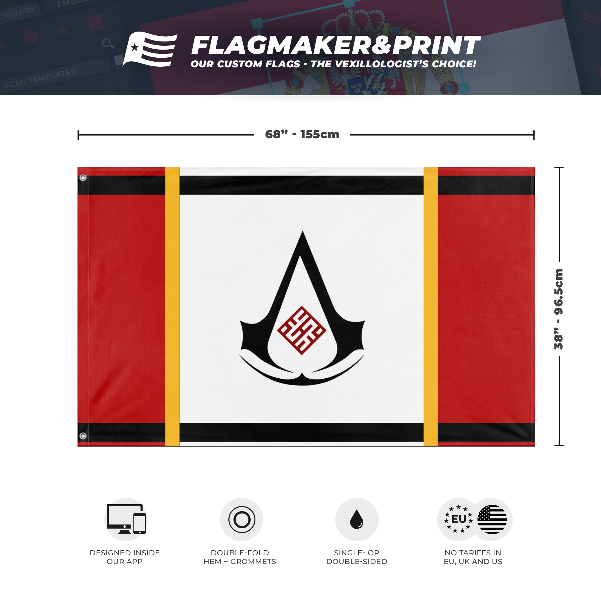 📐 Custom Personalized Flag made with Flagmaker & Print. Learn more about our product line-up on the Product Details page. This custom flag design is available as both a one-sided wall flag, or a double-sided display flag
