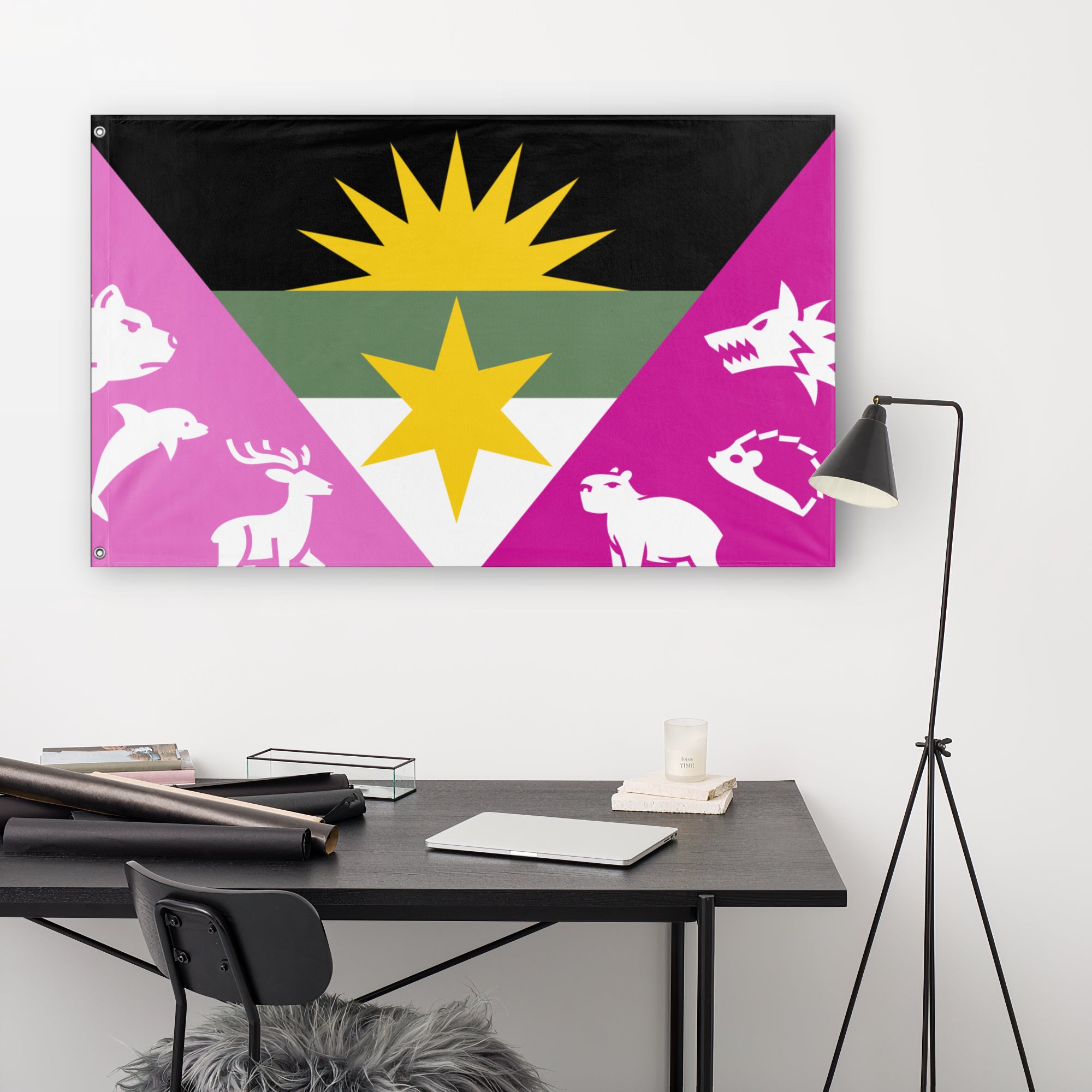 Aside from our worldbuilding and community events, we also host the infamous monthly flag design contest! In this vexillographer's battle royale, the best flagmakers from the entire world duke it out. The community votes for a winner each month, and the champion gets their flag printed, completely for free!