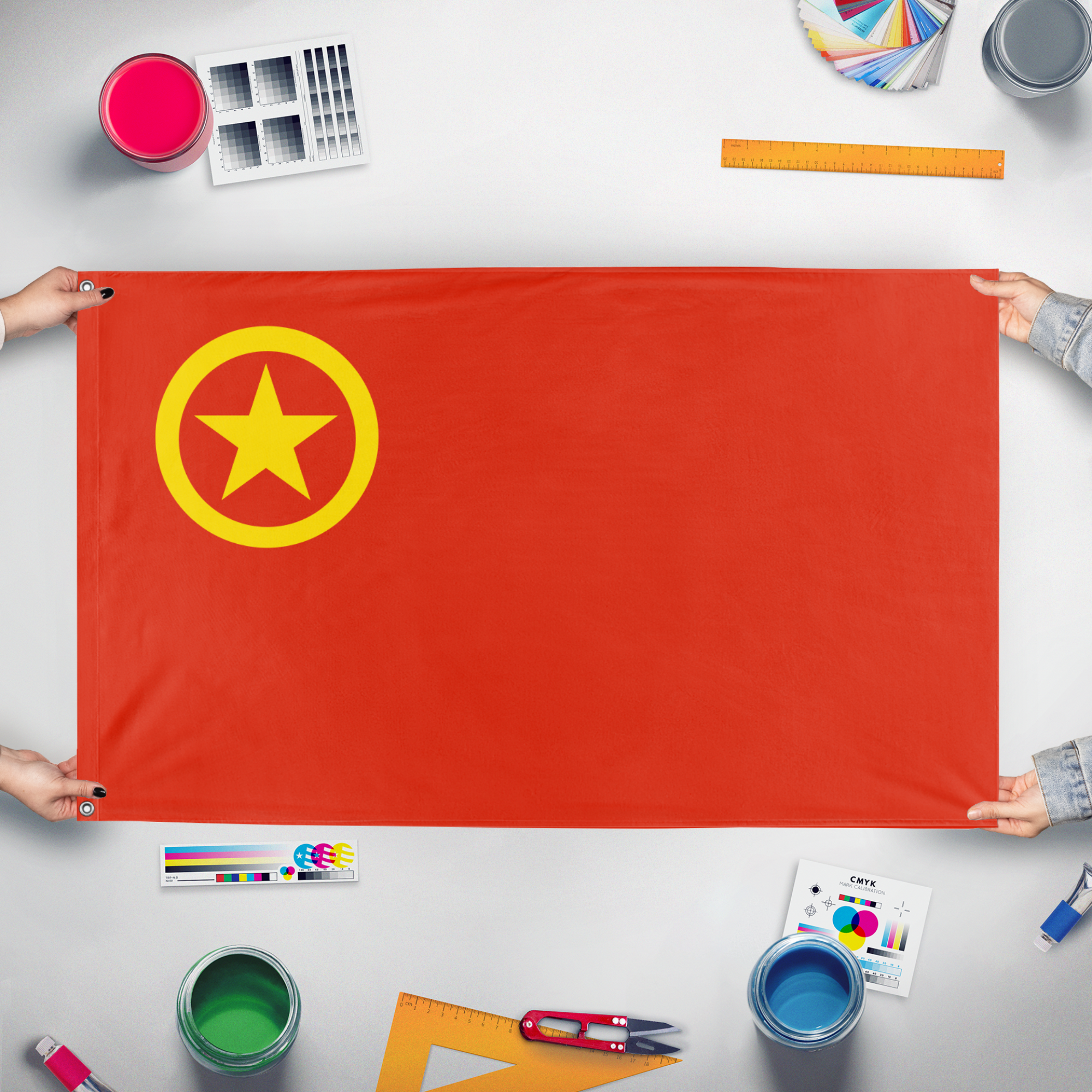 ✒️ The flag identified as the May Fourth Movement Flag is a significant emblem in modern Chinese history, representing a pivotal moment of national awakening. The design consists of a solid red field, which in this political context symbolizes revolution, sacrifice, and the Chinese nation. Positioned in the canton is a large yellow five-pointed star, a common symbol of socialist and communist ideology, representing the unity of the revolutionary classes or the guiding light of the new political philosophy. The star is situated within a yellow circle, which serves to emphasize its importance and can be interpreted as a symbol of unity and wholeness. This flag is historically associated with the May Fourth Movement, an anti-imperialist and political protest that began on May 4, 1919. The movement was a response to the Chinese government's weak reaction to the Treaty of Versailles, which transferred German concessions in Shandong to Japan. While not a single, officially adopted flag of the widespread protests, this design embodies the nationalist fervor and revolutionary spirit that defined the era. It became representative of the various youth organizations and political groups that grew out of the movement, many of which would later influence both the Kuomintang and the Chinese Communist Party, and it remains a potent symbol of Chinese nationalism and the call for a strong, sovereign nation.